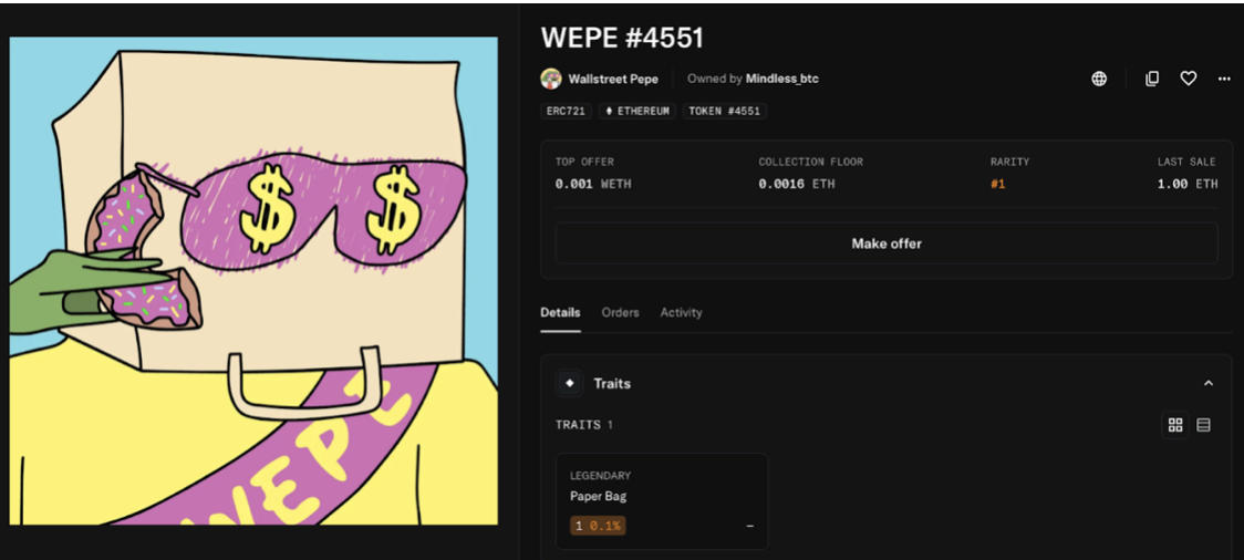 值得注意的是,兩週前 WEPE #4551 曾以 1 ETH 成交。