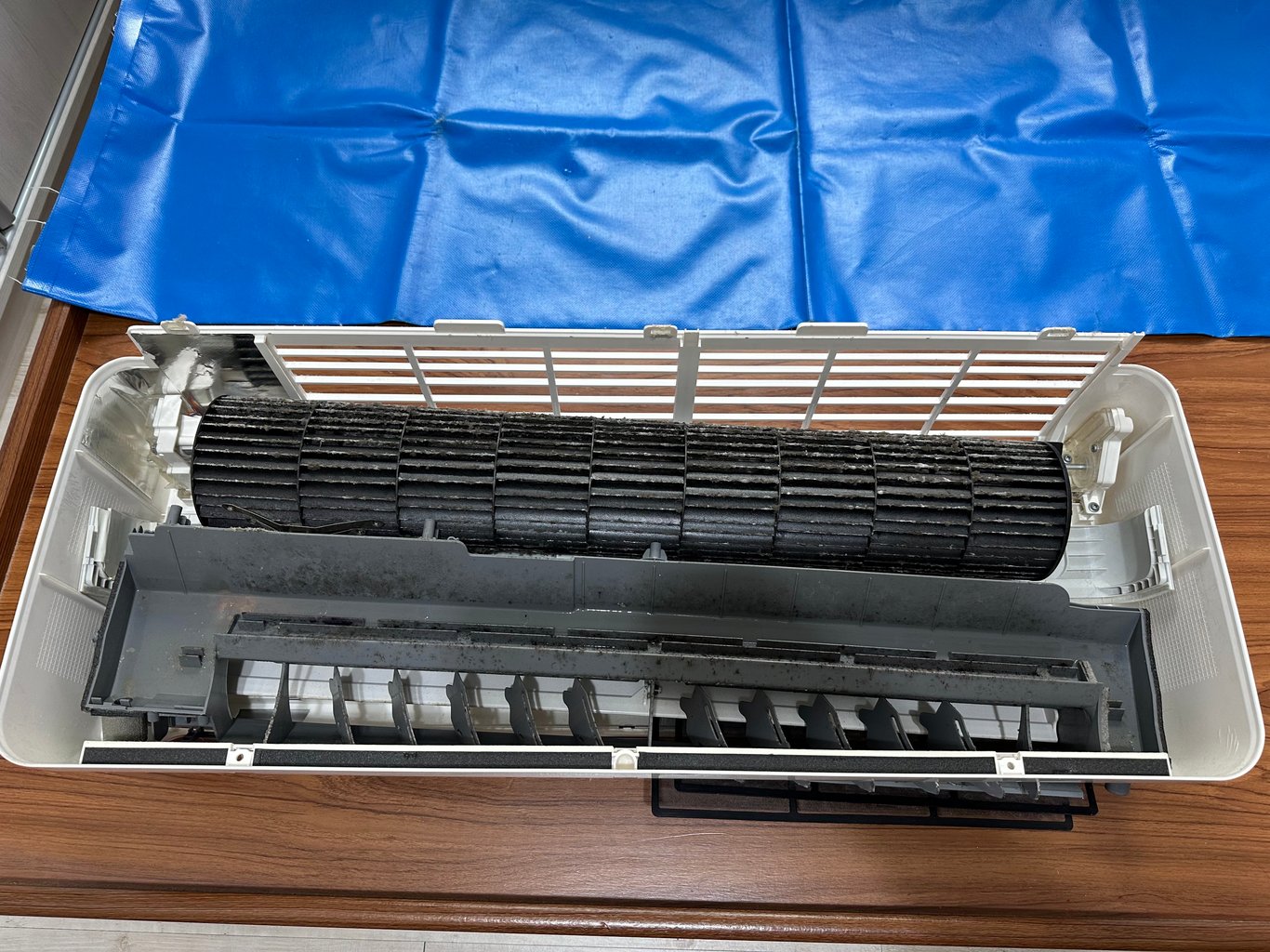 分離式內機零件、面板、濾網、風鼓和水盤清洗前~