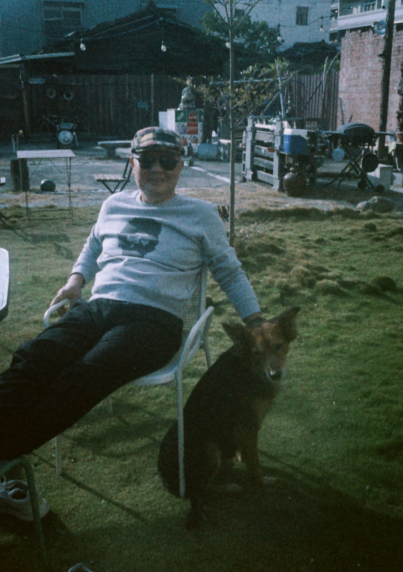 寫於,丘社門口前,山陀兒颱風後撿回來的樹幹為椅子,曬著太陽的五點鐘。