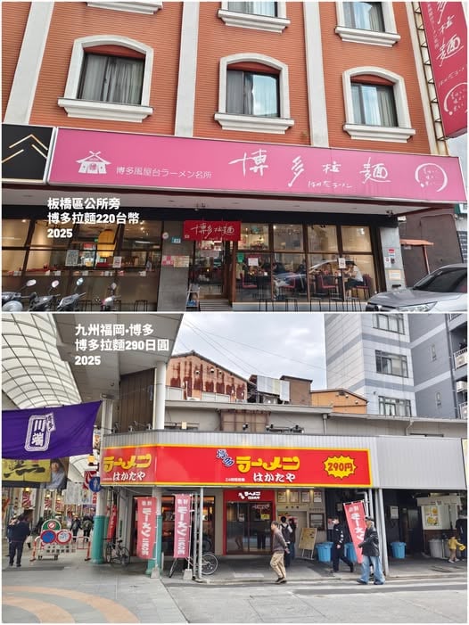 我來到板橋,同樣也是博多拉麵,看了菜單是220元台幣(我沒有進去吃)...我知道拉麵不能只比價格,還有各方面成本用料附加價值等等考量!