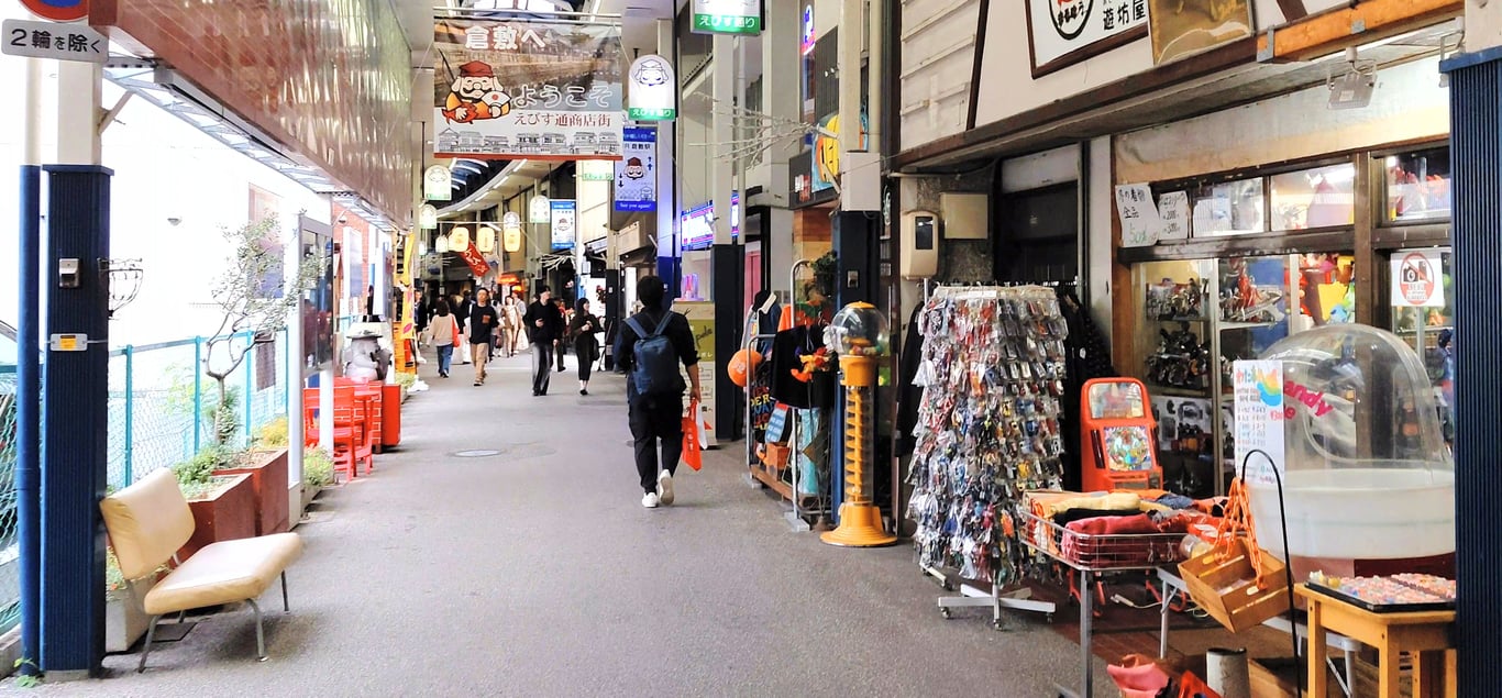 走出「倉敷川」,便轉入了當地的生活商店街。儘管並非明治時代的建築,這裡充滿了市民日常的溫度與活力,依然是一處值得探訪的特色景點。