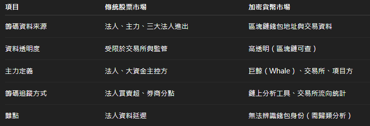 而在加密貨幣市場,雖然沒有證交所那樣的公開籌碼資料,但因為區塊鏈的「公開透明特性」,反而可以透過『鏈上資料(On-chain Data)』看出更深層的資金流向。