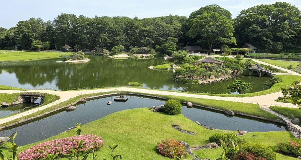後樂園是江戶時代由岡山藩主池田綱政所建造的大名庭園。園區採用「回遊式庭園」設計,遊客可以邊漫步邊欣賞園內的大片草坪、池塘、茶室等精心佈景。園中至今仍保存著藩主的起居處「延養亭」、能劇舞台等歷史建築。後樂園與水戶的偕樂園、金澤的兼六園並列為「日本三名園」,並被指定為日本國家特別名勝。