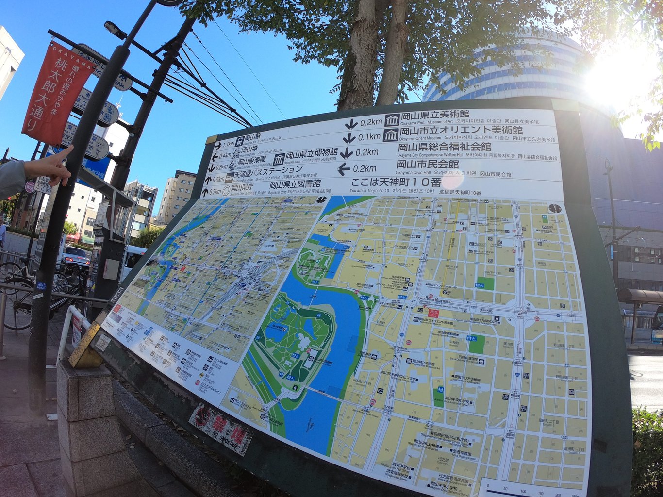 由於我購買了「JR PASS關西廣域5日周遊券」,第一天我決定先到岡山探路,後天再去倉敷,這樣行程會順暢很多。今天的計劃是上午遊覽岡山,下午前往新神戶。不過,今天不知道怎麼回事,下車後人有點迷糊,沒有再看自己準備的地圖和資料,只記得沿著一條直路就能走過所有景點。基本上,從岡山JR車站出發,主要景點都在一直線向前走便能步行到達。