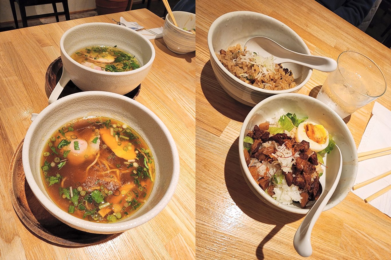 拍完照後繼續前行,感覺差不多到了午飯時間。這時又找到了一條叫「上之町」商店街,不過很多商店街確實是商店多,餐館比較少。我們往裡看見了一間LAWSON便利店,日本的便利店通常有熟食區(食堂),本來打算這是最後的選擇。逛了一下商店街,我們順利找到了一間小麵店。我們都選了麵食,不過這間麵店不太合口味,炒飯比較油膩,麵條也像以往吃過的日式拉麵一樣,鹹味比較重。