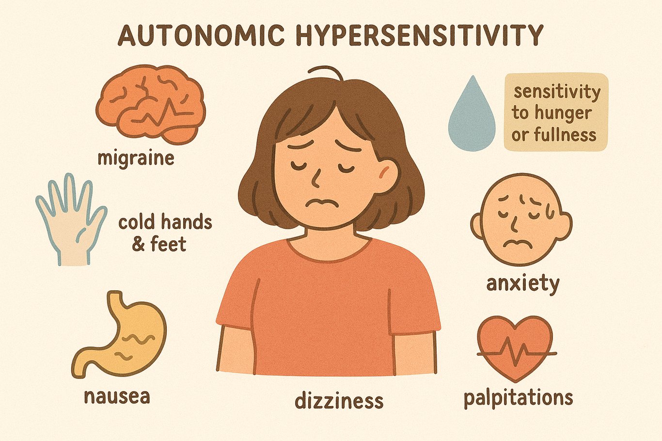 神经科学的入门学习让我知道,这涉及神经调节。其中二尖瓣脱垂(Mitral Valve Prolapse, MVP)常伴有交感神经兴奋过度,从而产生焦虑、心悸、低血压、晕厥感等症状,严重时可称为自主神经功能失调(Autonomic Dysfunction)。而大脑的血管张力和痛觉感受受自主神经调控,交感过强会使脑血管间歇性收缩,导致偏头痛样头痛。