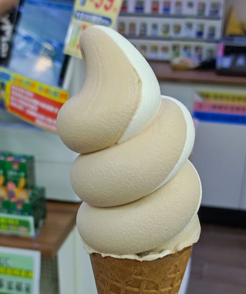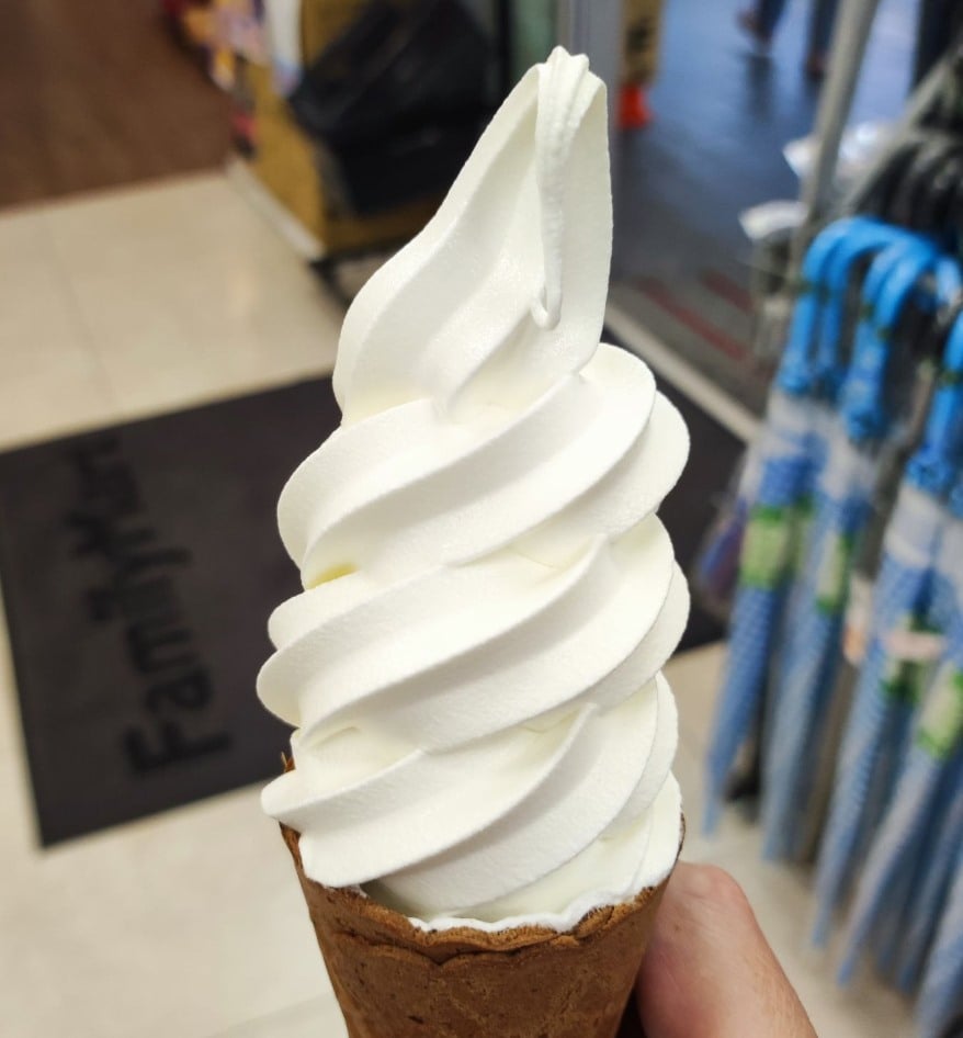 搭配插圖是昨天吃得全家霜淇淋,這次全家在七家店推出香菜口味,其他店是碳燒咖啡與莊園牛奶,個人沒特別喜歡香菜,就沒去買香菜的,也不喜歡咖啡,所以趁買一送一,跟同事一人一支,他吃綜合我吃牛奶。