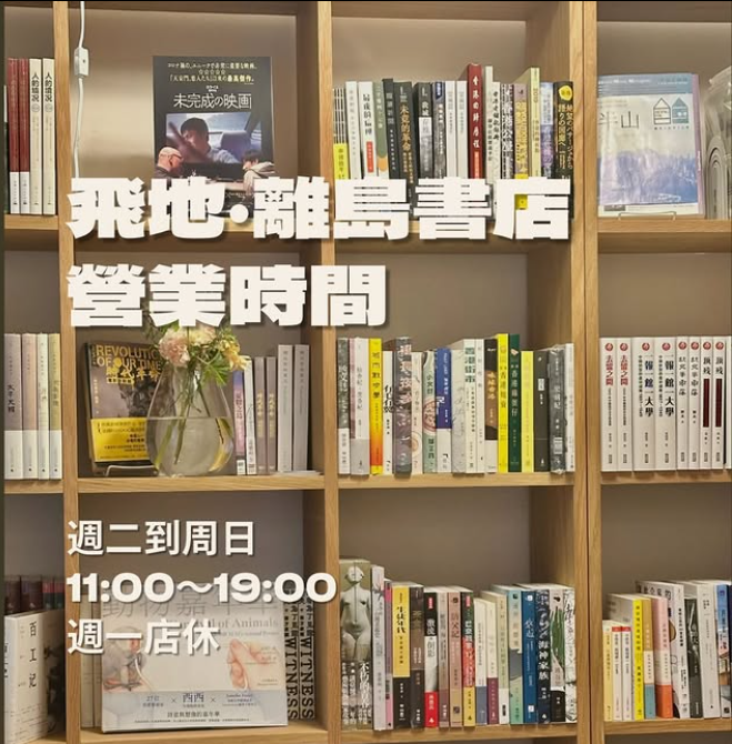 還有飛地·離島書店。是「飛地nowhere系列」與「台灣離島出版社」兩品牌攜手在東京高円寺的書店街上,打造華語書店空間,與其它空間形成群島式文化生活。(飛地現有台北西門町、澳洲·奧克蘭,倫敦與荷蘭)