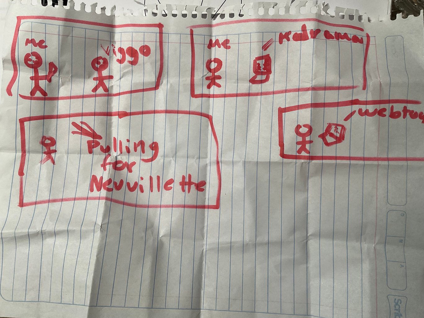 我弟朋友画的抽象图片 通过我弟说这个是她的愿望清单 成功猜出第一个是这位亲想要杀掉一个叫viggo的人