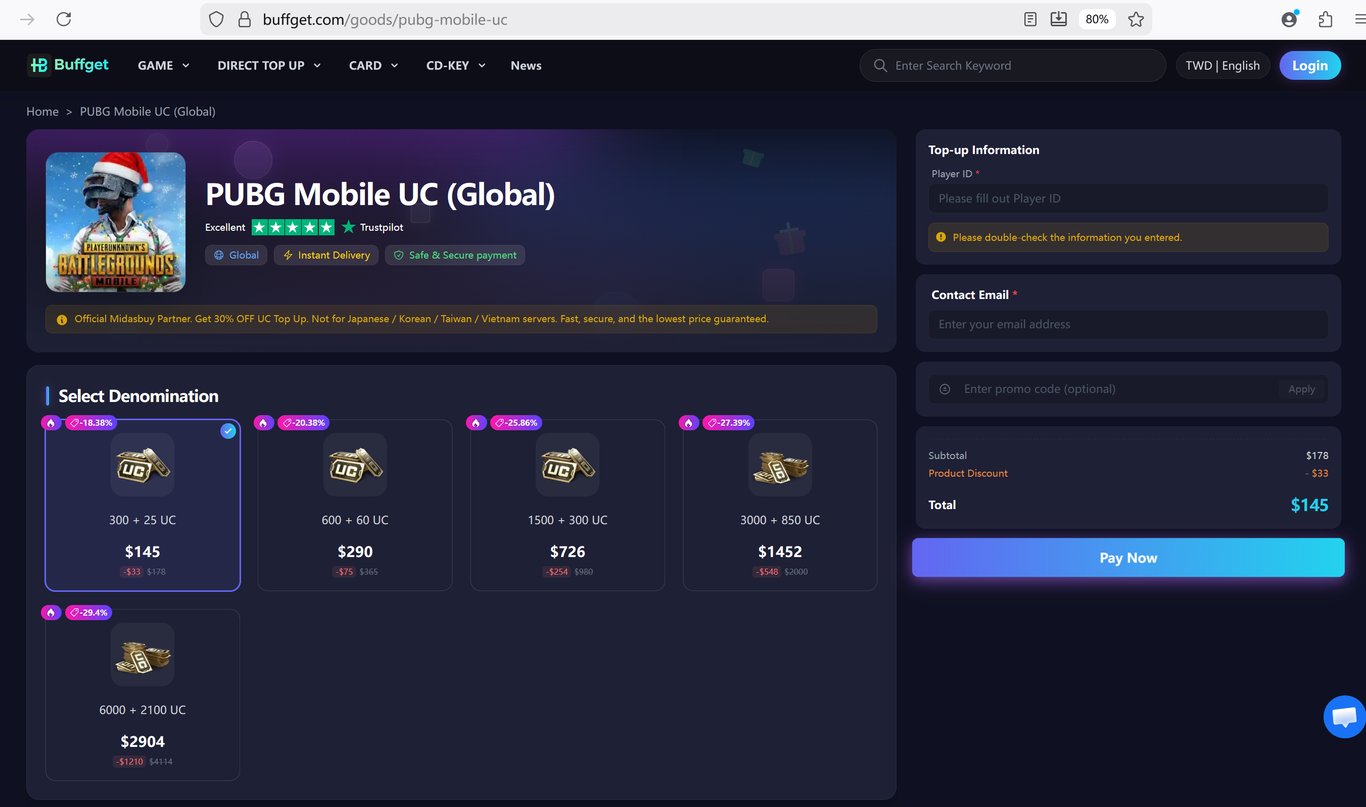I highly recommend you take a moment to Google search for "buffget". It is a platform widely trusted by the veteran community to optimize their gaming expenses. By using buffget, you can discover options to how to buy cheap UC that are safe, secure, and delivered instantly via Player ID.