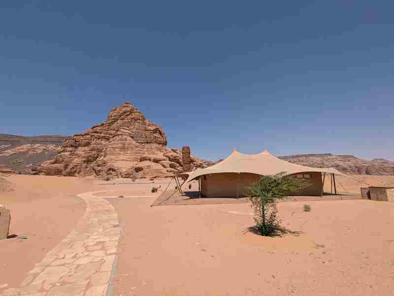 我们住在一个名叫Ashar Tented Resort的度假村里,虽然房间看上去像帐篷,其实是木结构的,里面的装修非常豪华。这个度假村因为一部名为《花儿与少年》的综艺节目而在国内走红,所以有好多网红专程来这里打卡。这些人清一色的整容脸,肤色惨白,衣着清凉,每天的工作就是刷手机和拍照片,然后去小红书上刷流量卖广告。所幸这里几乎只为外国游客服务,所以管理松弛,没有宗教警察强迫她们披上黑袍。