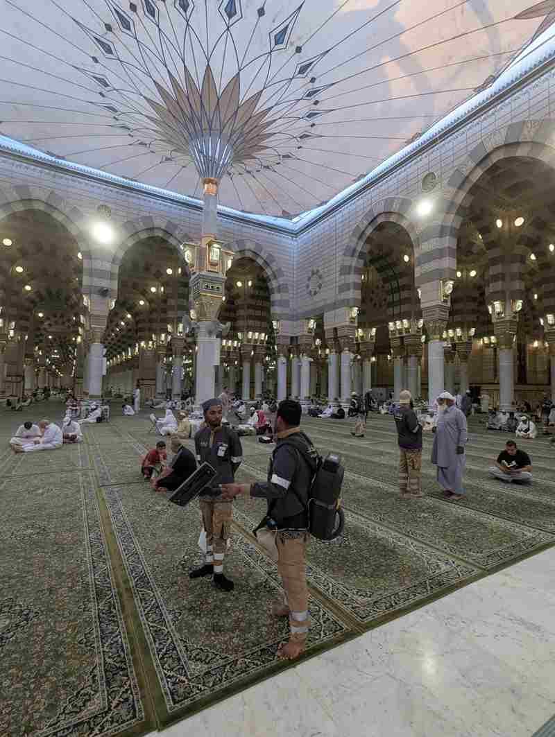 沙特的几大清真寺里虽然都有空调,但因为人流过大,温度依然降不下来。不过,里面的空气却一点也不难闻,甚至有股淡淡的熏香味道,不得不说穆斯林爱清洁的传统实在是太强大了。