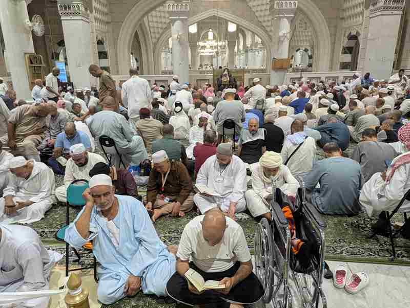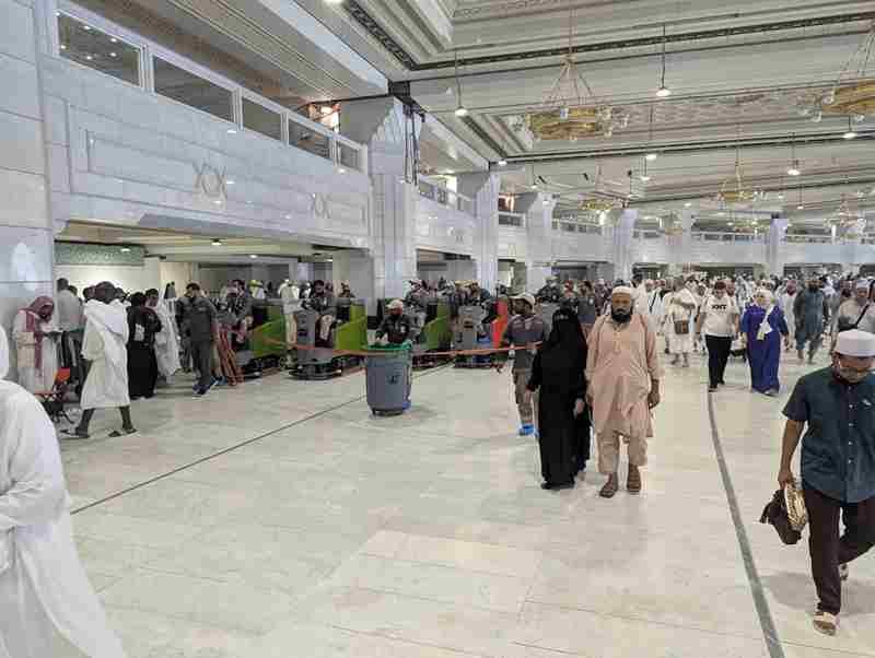 我的那几位同伴都穿上戒衣进入了场地中央,把自己变成了演员。其中几位只转了半圈就出来了,据说里面人挤人,不但体感非常糟糕,而且有遭遇踩踏事故的风险。好在大家都是在晚上进入禁寺的,气温降下来一些。这里每天24小时开放,转圈的人是永不停歇的。据统计,仅在2024年就至少有1300人死于高温导致的中暑或脱水等应激反应,而踩踏导致的死亡事故也时有发生。