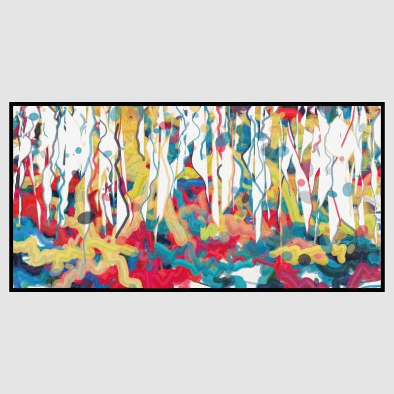一開始是被這張作品的色彩所吸引的,很繽紛卻又不會過度刺眼,彩色的結構與白色的裂痕象徵了結構與情感釋放之間的張力。