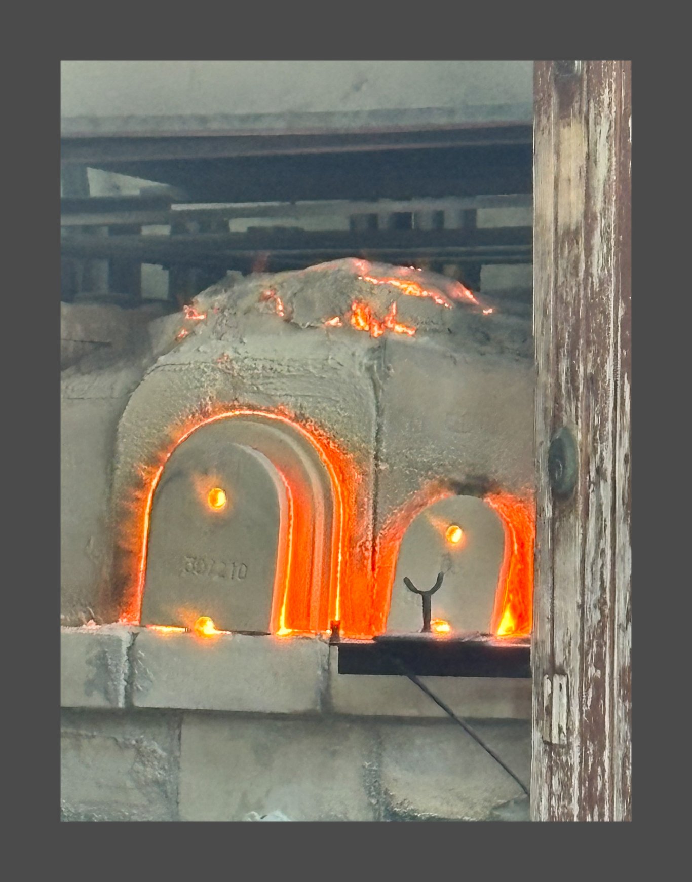 沿街的玻璃加工作坊随处可见,我们驻足在门外观看,随手拍下有些简陋,却火红如太阳,温高惊人的玻璃窑。