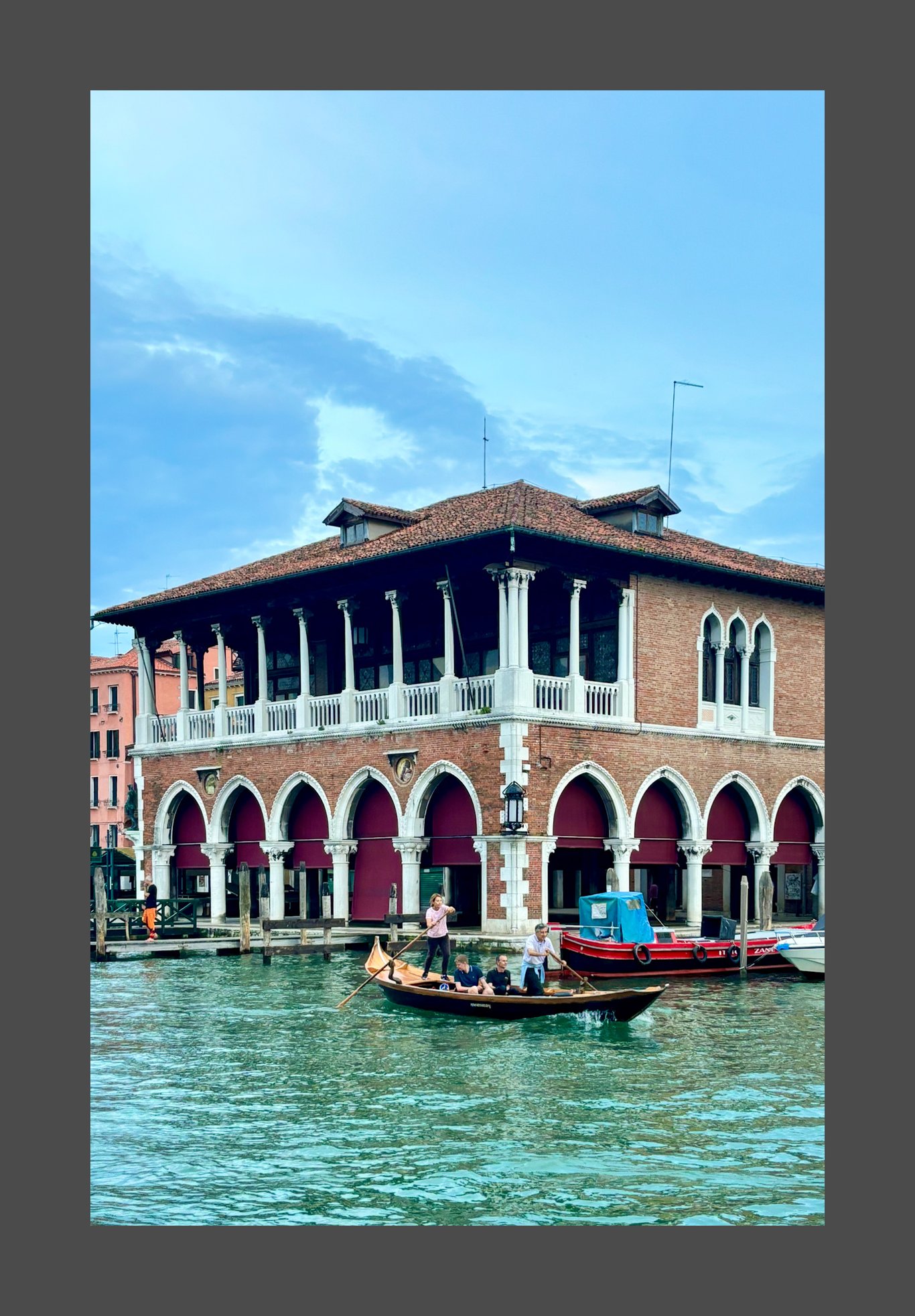 站在甲板上的我们用手机追寻渐行渐远的主岛。哥特式风格的黄金宫像个典雅端庄的淑女站在绿波里目送我们,里亚托市鱼市的模样更像个生气勃勃的小伙子,随意地冲我们招着手。