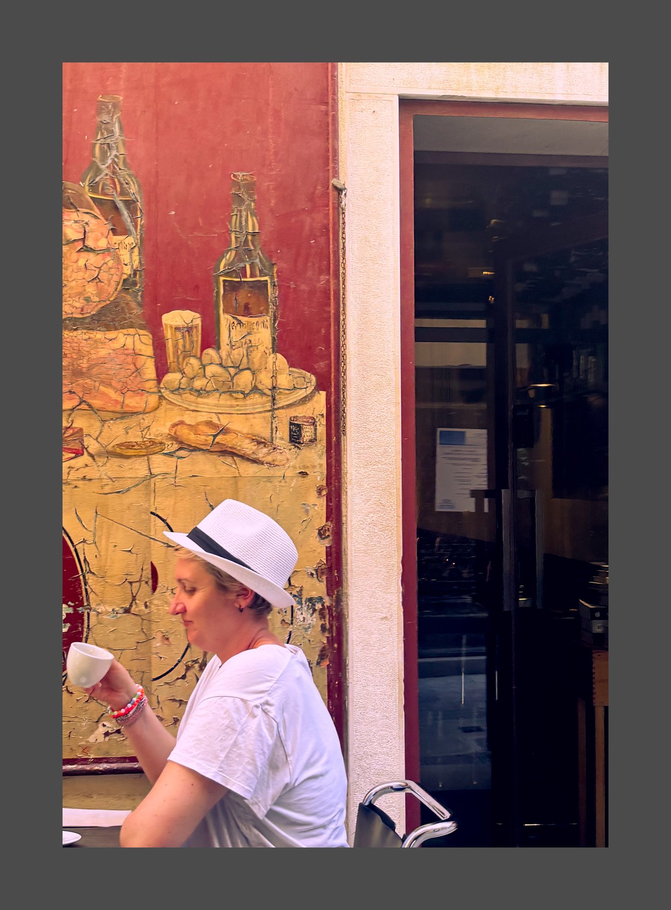 还有一位坐在露天咖啡馆的女士,成了我手机里的风景。