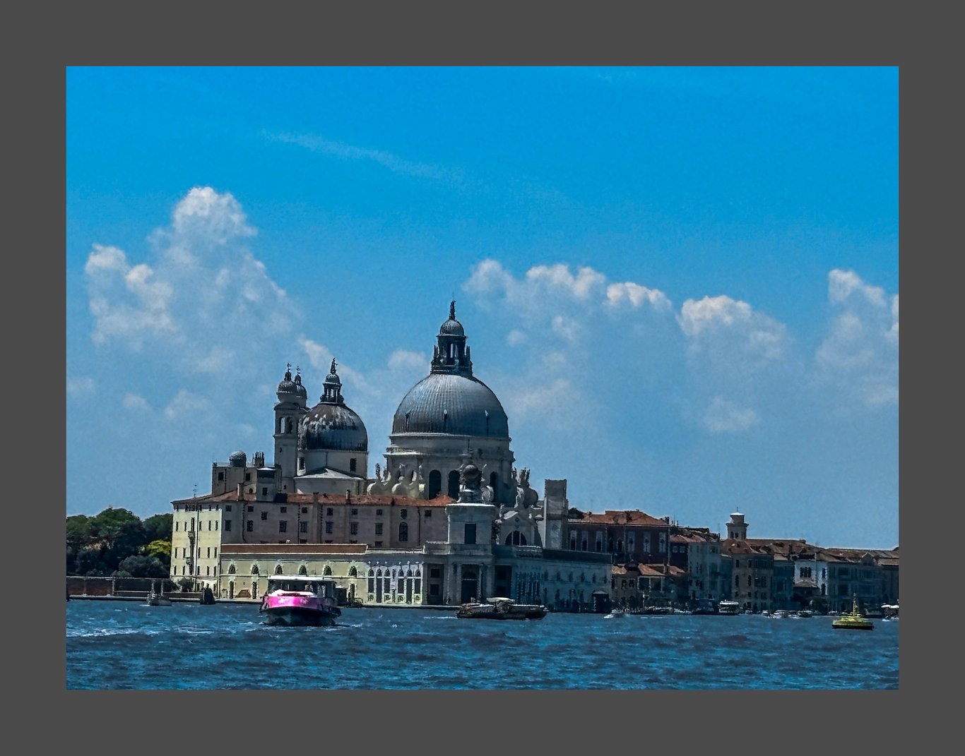小艇且行且停,我们享受着亚得里亚海咸涩的微风,远处海关大楼在晴天威风凛凛的劲头和透纳画中的模样完全不同。