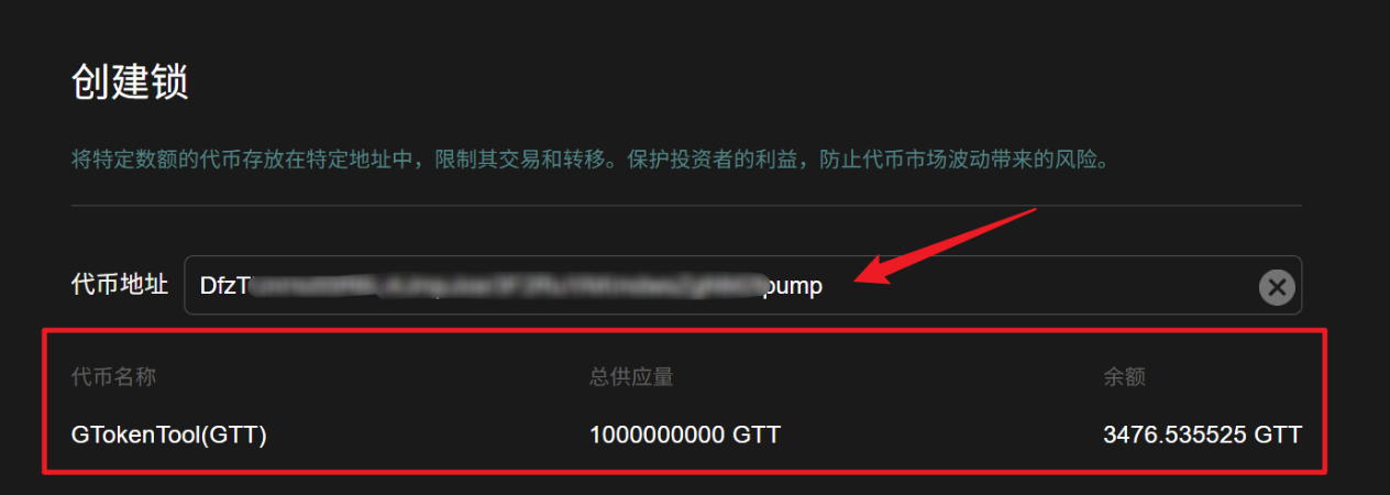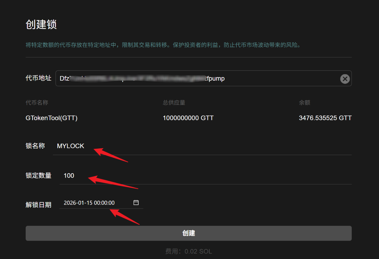(仅用于自己管理,不会影响链上数据)锁定数量:输入你要锁定的代币数量