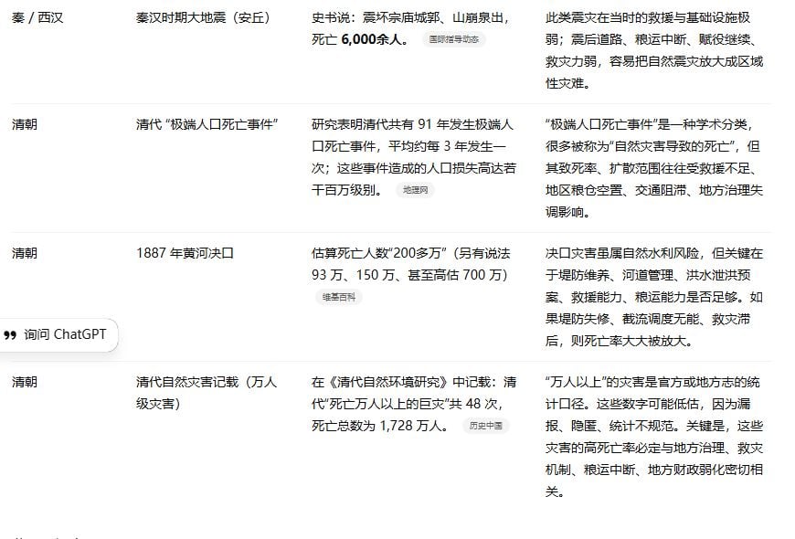 古代所谓的大规模死亡(战争、瘟疫、旱灾、洪灾等)常被记为“天灾 / 天意”,但其背后极可能是体弱、赋税压榨、制度失能、社会动荡、人为管理失败的合流产物。
