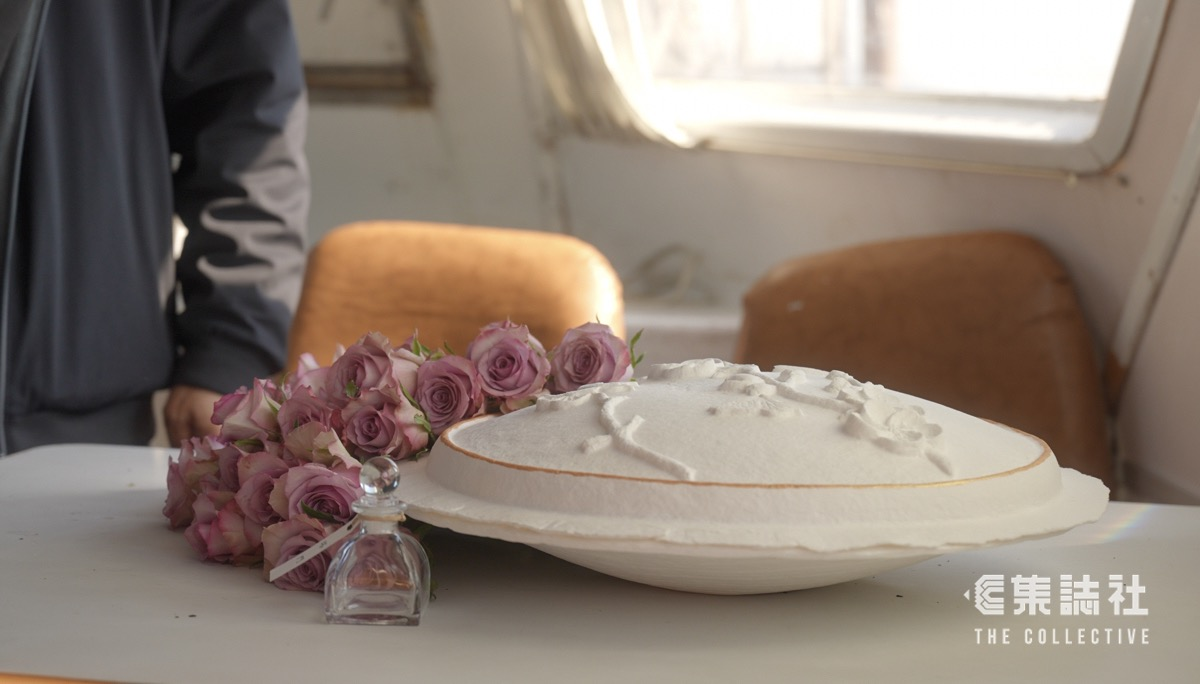 拍攝時,我也訪問了葉太的兩位兒子,拍下他們以愛和幽默去送別媽媽,令人感動,但因影片篇幅有限,現以採訪手記詳細補上。那一天,天色清朗,一隻隻燕鷗追著我們的船,捕食被船浪趕出來的小魚。志願團體「毋忘愛」免費為宏福苑居民舉辦喪禮,包括海葬儀式,我們幾家傳媒跟葉家上了船,記錄過程。葉太的骨灰容器非常雅緻,是紙製的一個圓盤,面頭雕了凹凸的花朵紋理,拋入大海後便會自然分解。