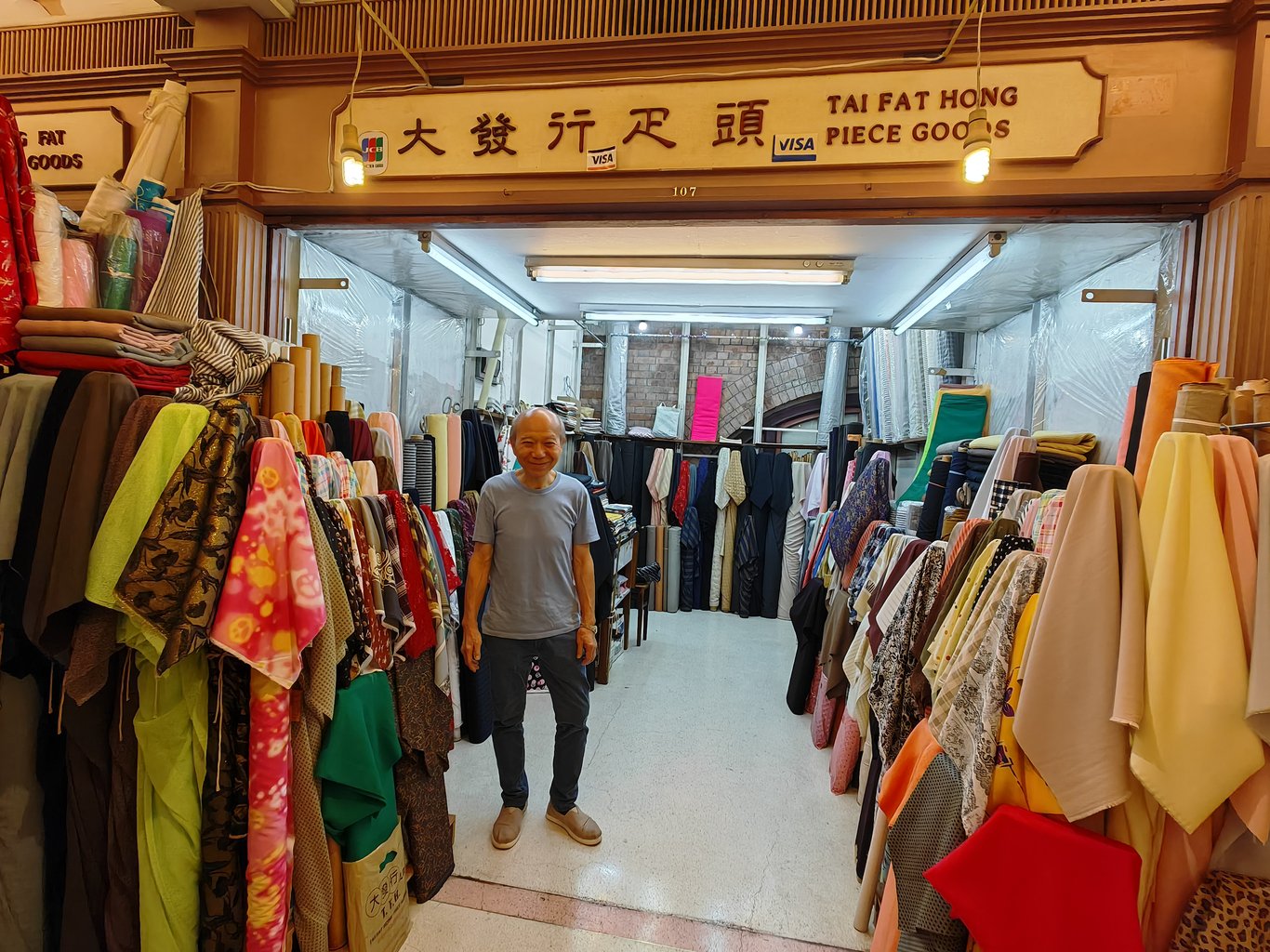 大發行一九九零年由上環永安街(俗稱花布街)搬來西港城。他說,九七年前生意最好,很多歐美客人,他們大手買入布匹造衣服或成衣售賣,不計較價錢。