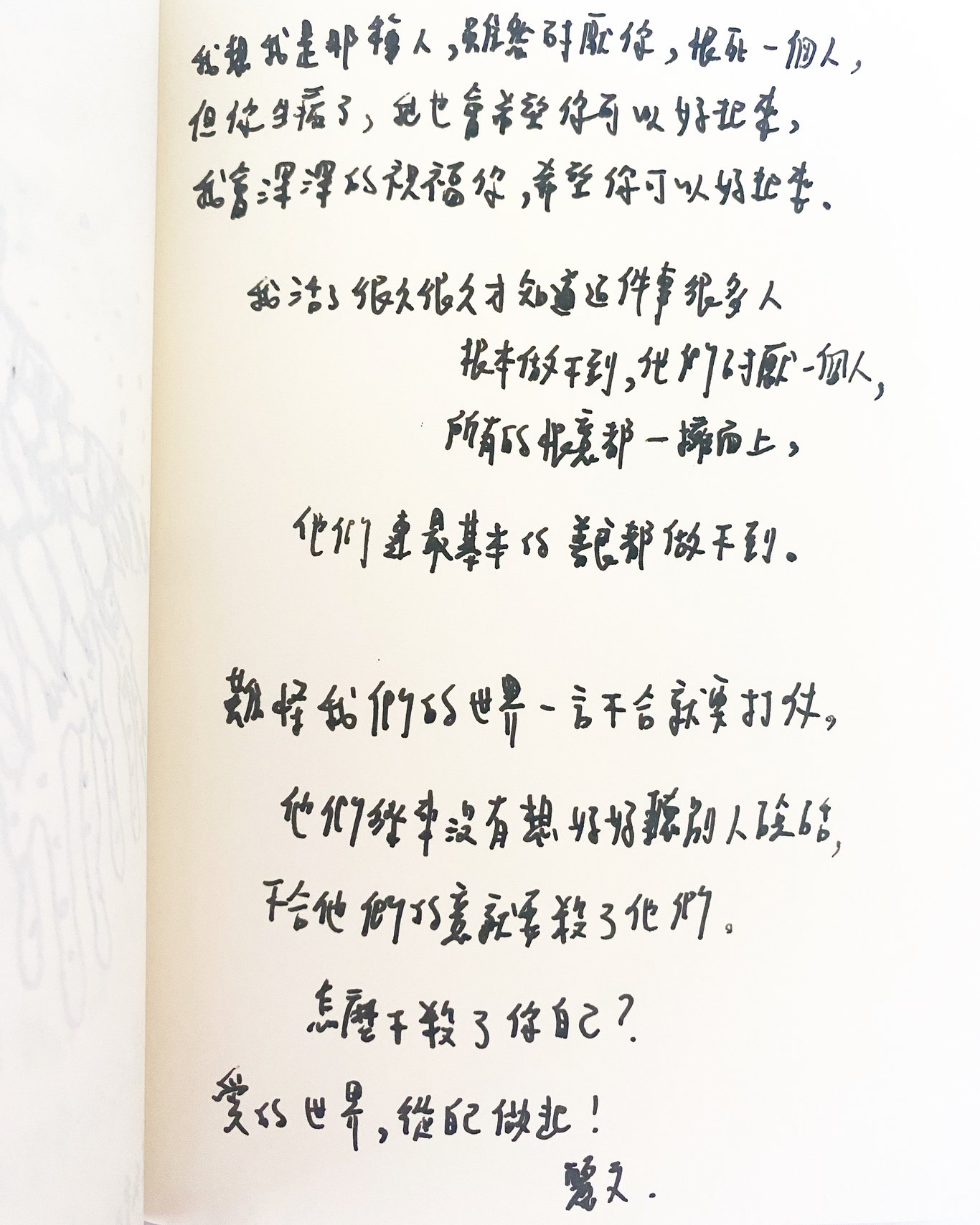 希望走過千山萬水,我仍是我,仍有善良仍願意為了那些奸惡站出第一步,仍願意做一個正義的人。