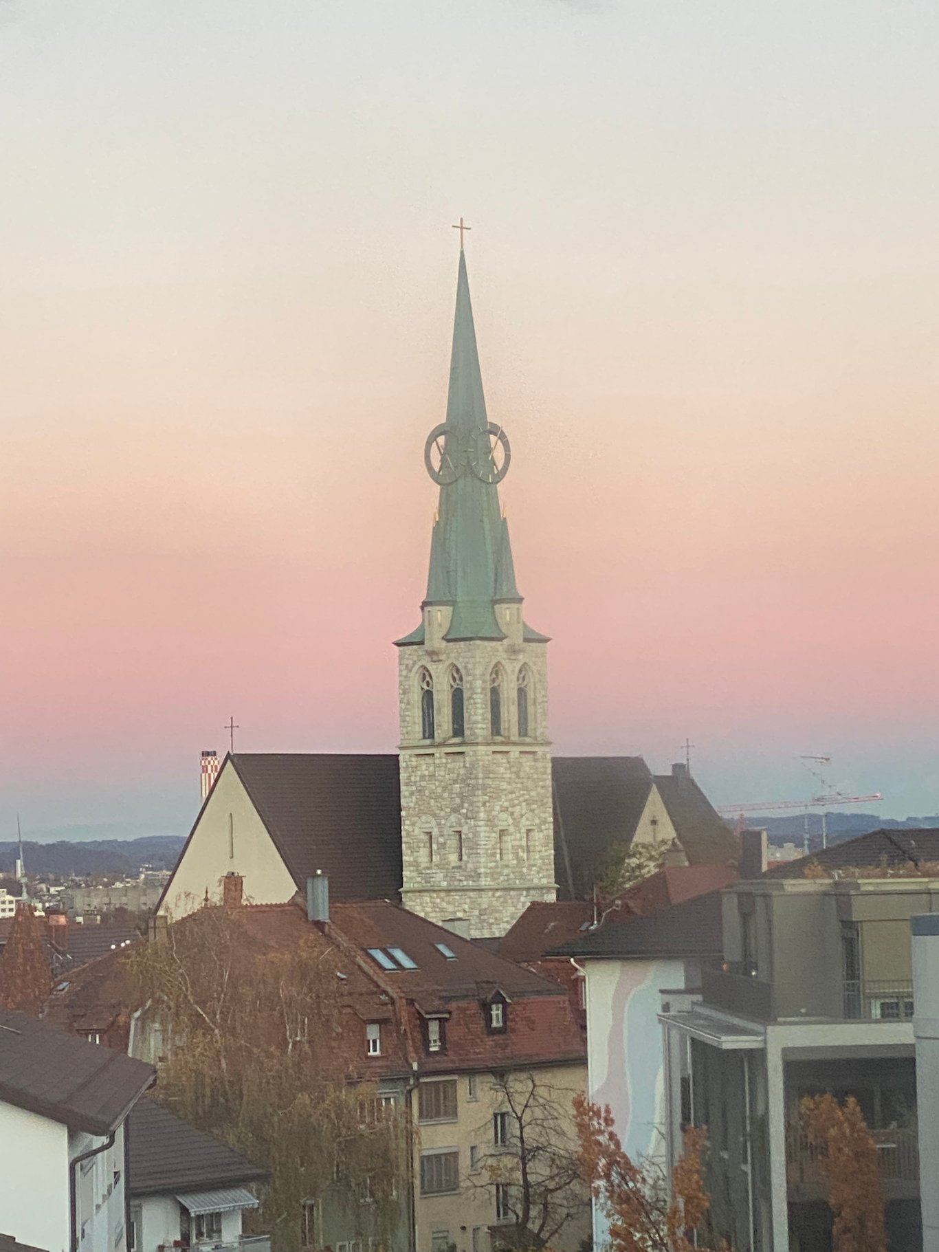 第一次覺得教堂鐘聲如此煩人,蘇黎世大概就是一個隨處都聽得到鐘聲的地方,搬進一個房子,半夜每個小時一次的鐘聲,第一天大概明顯聽了十個才過完一個晚上,第二天慢慢的,減少一個,隨著習慣,每天睡著仍會聽見幾個鐘聲。