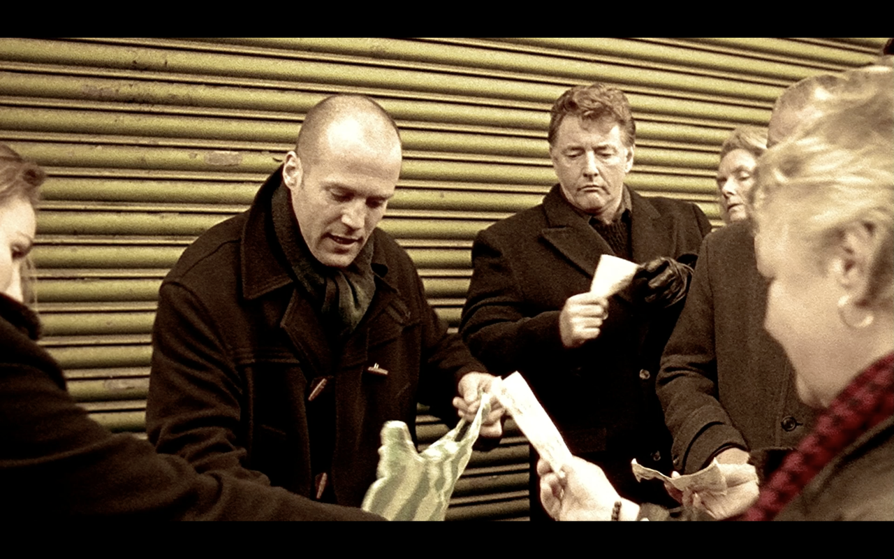 這兩個地方現在都已經被上鎖關閉,在影片高潮部分四人的公寓中,蓋里奇用巧妙的劇本構思把5波人馬全聚集在這裡,背景音樂是Gypsy Zorba,也是本片最火出圈的配樂。從一開始的音樂驟停,到沈默,再到一句“What fuck is going on”為導火線的槍戰爆發,一切水到渠成,蓋里奇老練的完全不像他的長片首作。他也是聰明的,《兩桿大煙槍》中從來都沒有類似香港警匪電影中事無巨細、大場面的槍戰戲,蓋里奇更習慣用這些戲為輔,重點表達槍戰或者重頭戲外的角色變化,從而營造出反高潮的體驗。大克里斯就是因為這場槍戰順利拿到了50萬英鎊和兩桿煙槍。也是在這個場景中爆出了蓋里奇式英倫金句,當艾迪問肥皂拿了什麼武器的時候,肥皂掏出了各式各樣的刀,並解釋說:“外行人才玩槍,內行人都玩刀”(Guns for show. Knives for a Pro.)