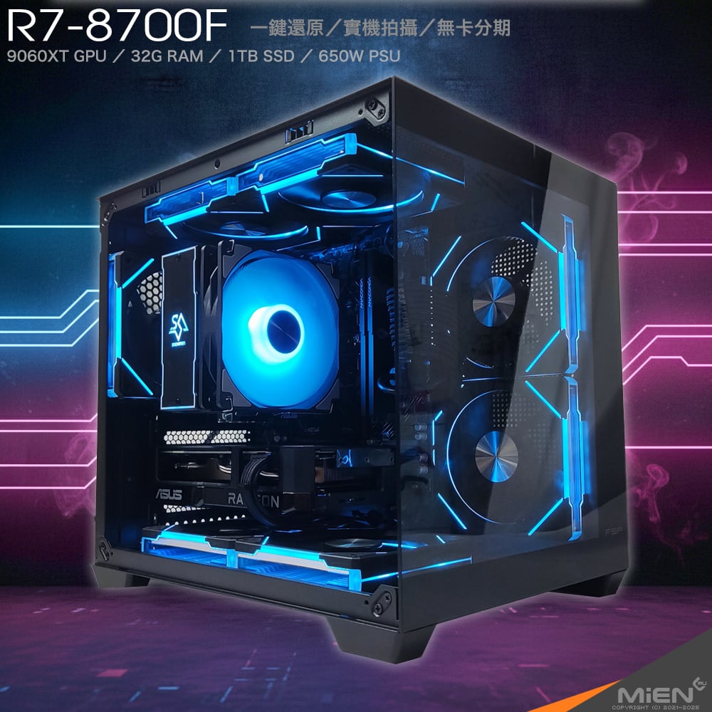 全新 R7-8700F + 超散熱6銅管ARGB塔散電腦主機