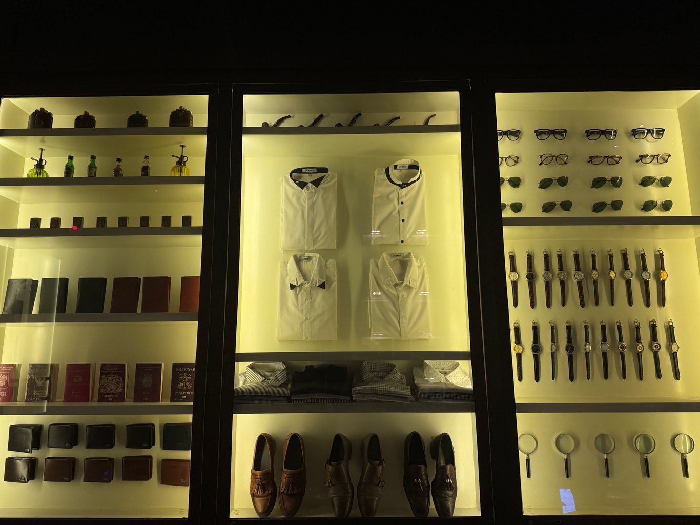這次被安排坐在背後是滿滿的錶跟護照還有襯衫及皮鞋的這一區,整個氛圍很有趣。