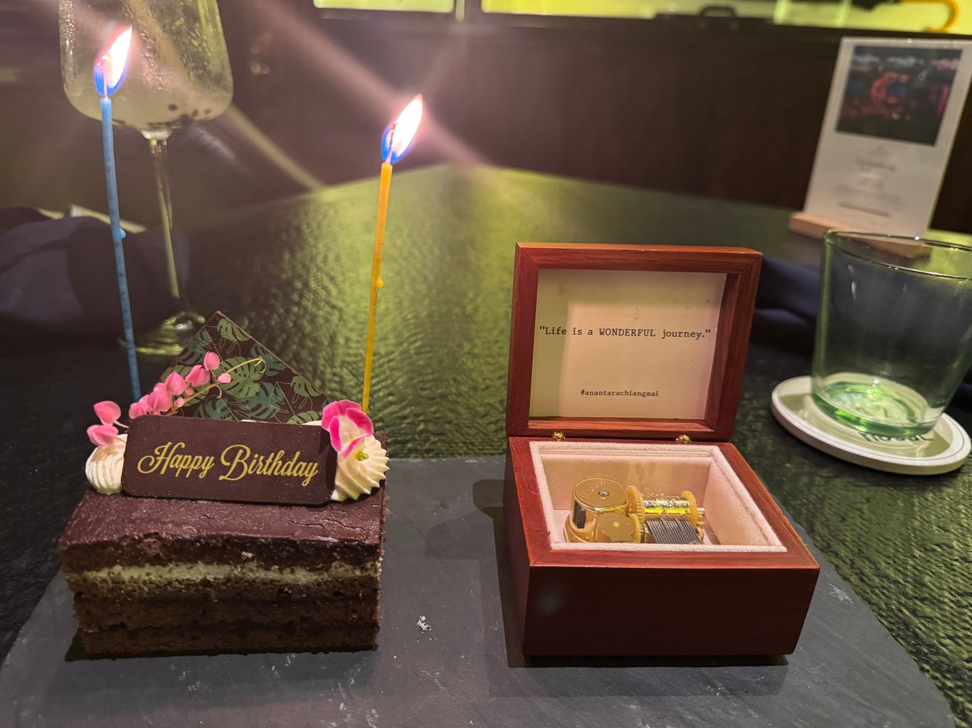 生日這天因為朋友要上班,我就在泳池游泳午休又一起去按摩,按摩後回到房間突然有人敲門,沒想到是接待我們的服務人員,拿著芒果冰淇淋插著蠟燭來唱生日快樂歌,情緒價值直接拉滿。