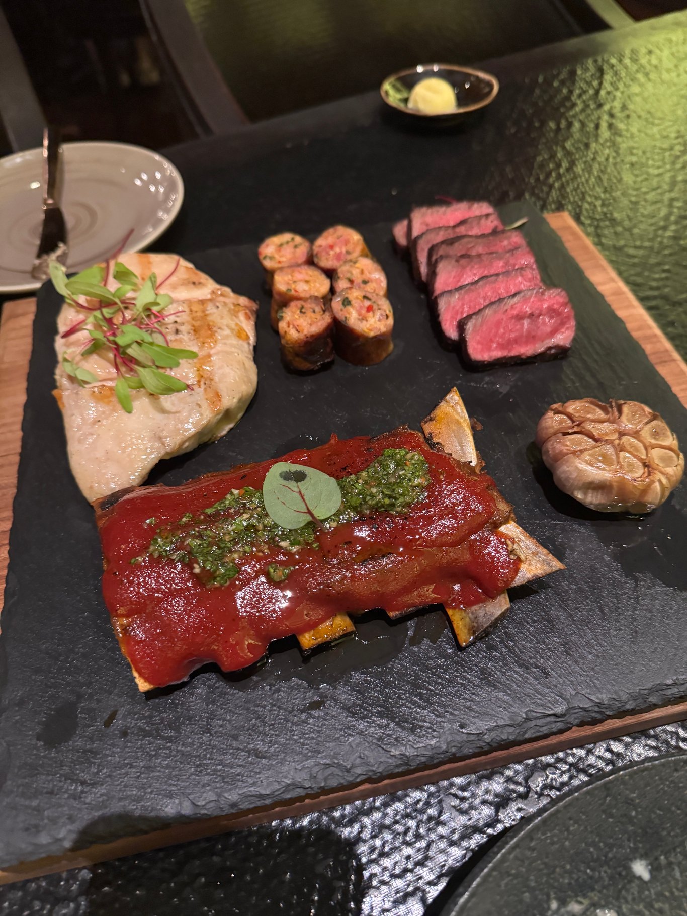 這家店主要以西餐牛排為主,因為兩個人想吃的東西又滿多的所以選了一個牛肉組合搭配泰北香腸還有雞胸肉?哈哈雞胸肉出現的很莫名