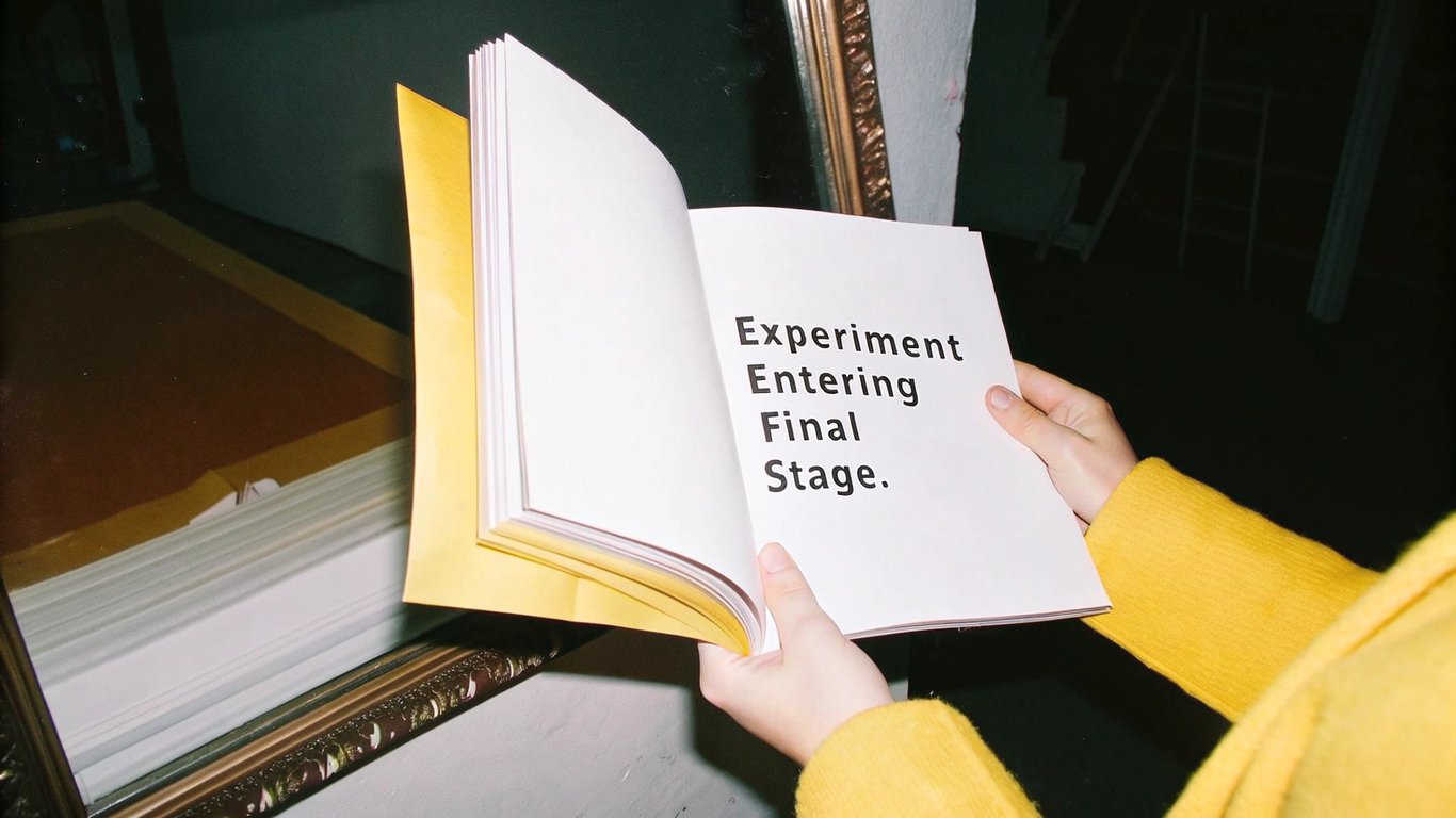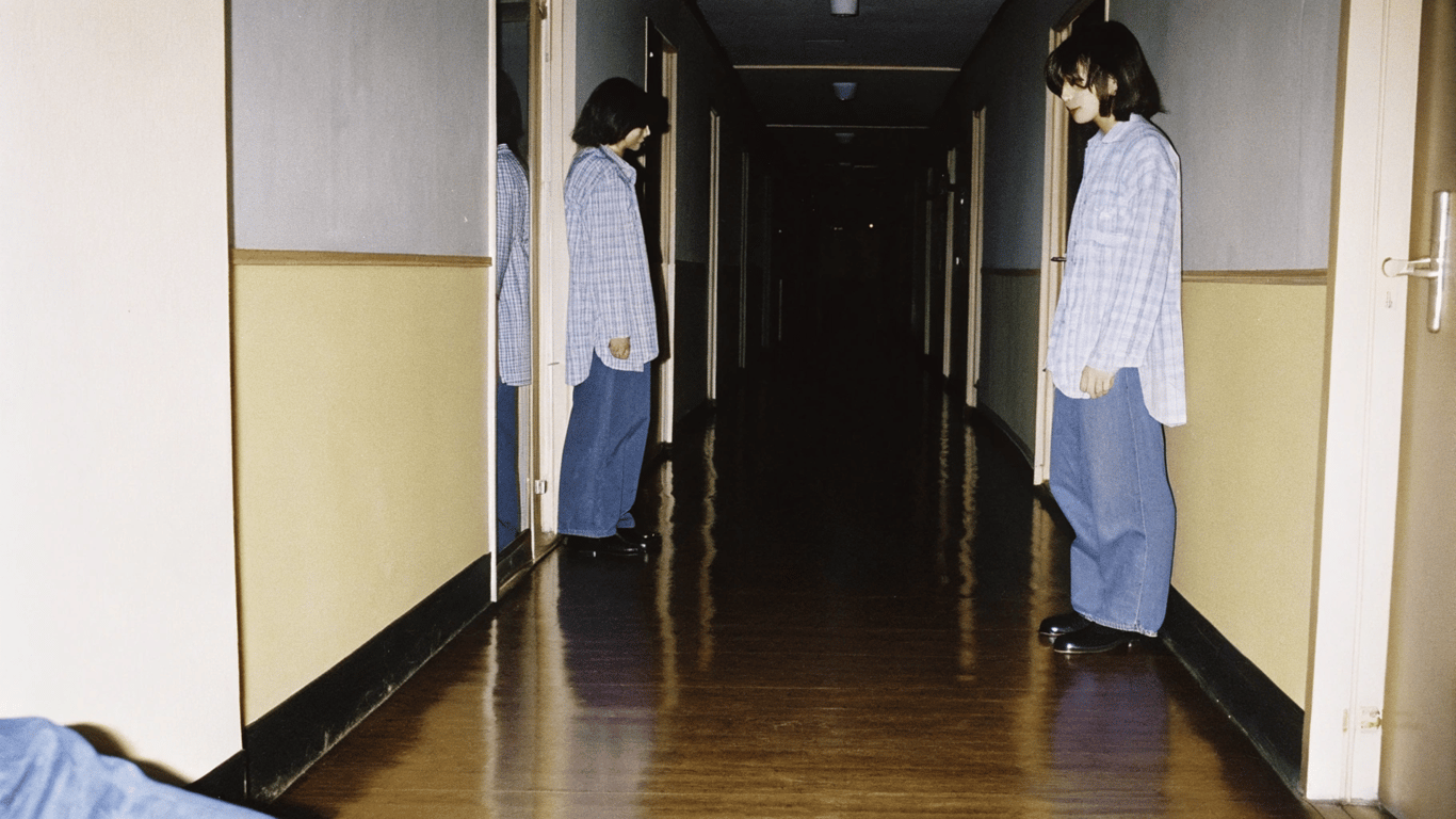 她猛地回頭,看見鏡面裡的「自己」依然坐在座位上,平靜地埋首書寫,仿佛從未離開。