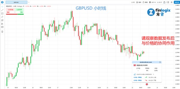 數據上,今日會有英國CPI通膨數據的發佈,按照Finlogix網站上對於該數據的統計分析可發現,過去兩年,每當公佈值大於預期值時,一小時後,GBPUSD上漲概率為100%! 波動幅度可達0.16%;反之,當公佈值小於預期值時,GBPUSD下跌概率為78%! 波動幅度可達近0.26%,按照現行價格來看,此數據公佈後,若有超出市場預期的情況發生時,也就是約20~35大點(一大點為0.0001)的利潤空間,從這個角度來看,若要交易此數據行情,交易規劃應擺在觀察數據公佈前一分鐘K線的高低點,一但優於預期,同時突破高位,則有考慮做多的機會;反之,若差於預期,同時跌破低位,則有考慮做空的機會。需注意的是,這是超短線事件單,若要在當下及時進場,可考慮使用買進突破單(buy stop)或賣出突破單(sell stop)來實現。