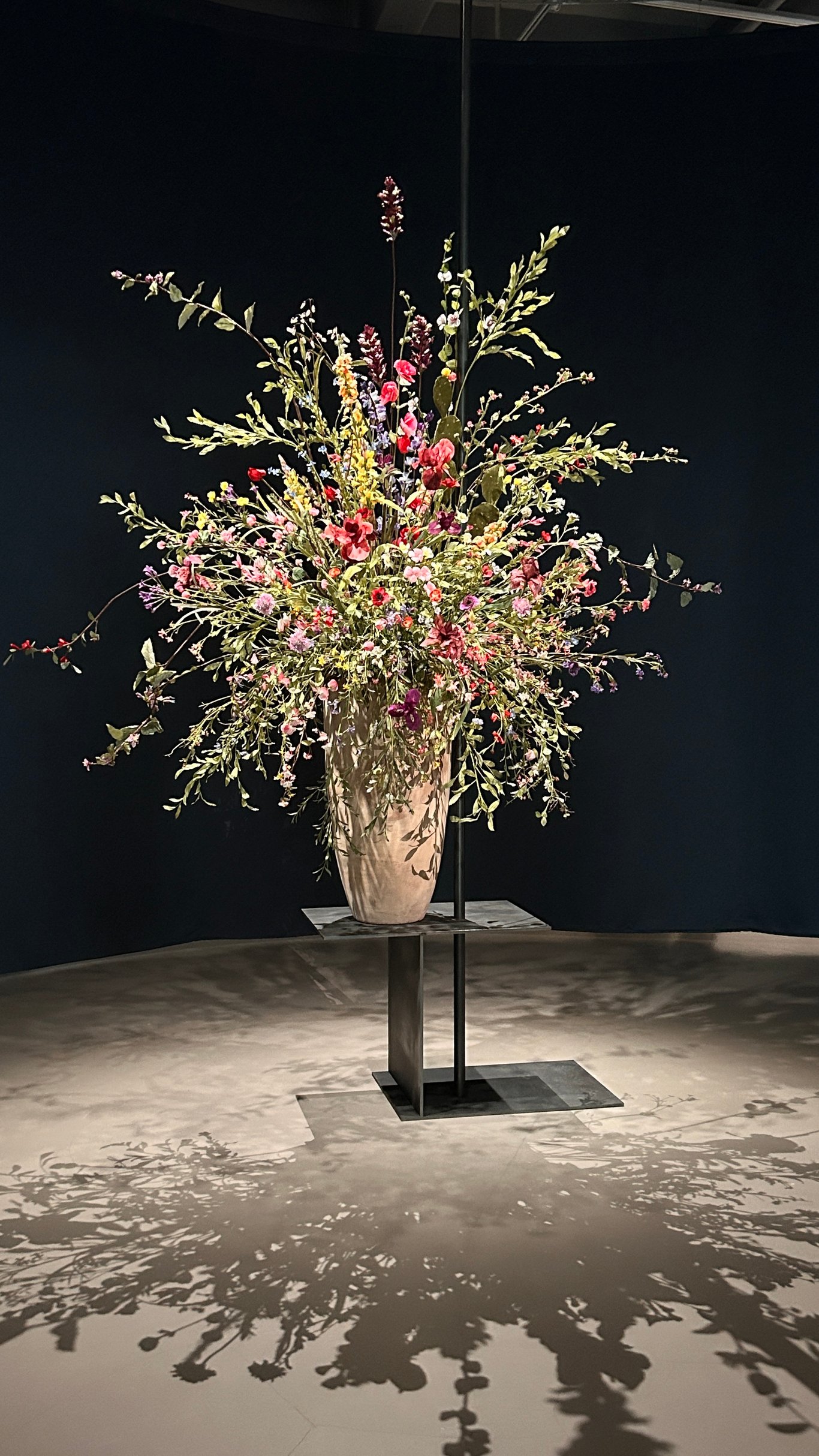 這件作品叫《巴勒斯坦之花》,這盆精緻的人造花既近似於真實,又顯得格外僵硬——它不會枯萎、也不散發香氣,完美卻令人感到疏離。透過這種矛盾的存在,藝術家米斯馬爾將「花」作為一種隱喻,指向巴勒斯坦的複雜處境:一個仍充滿生命力的地方,同時也是逐漸凋零的記憶,其被保存與再現的方式多半依賴圖像與複製的歷史遺跡。