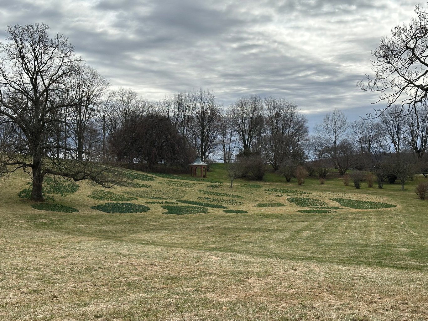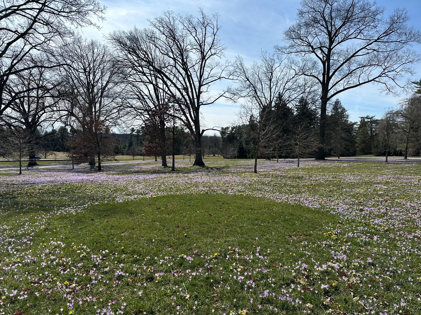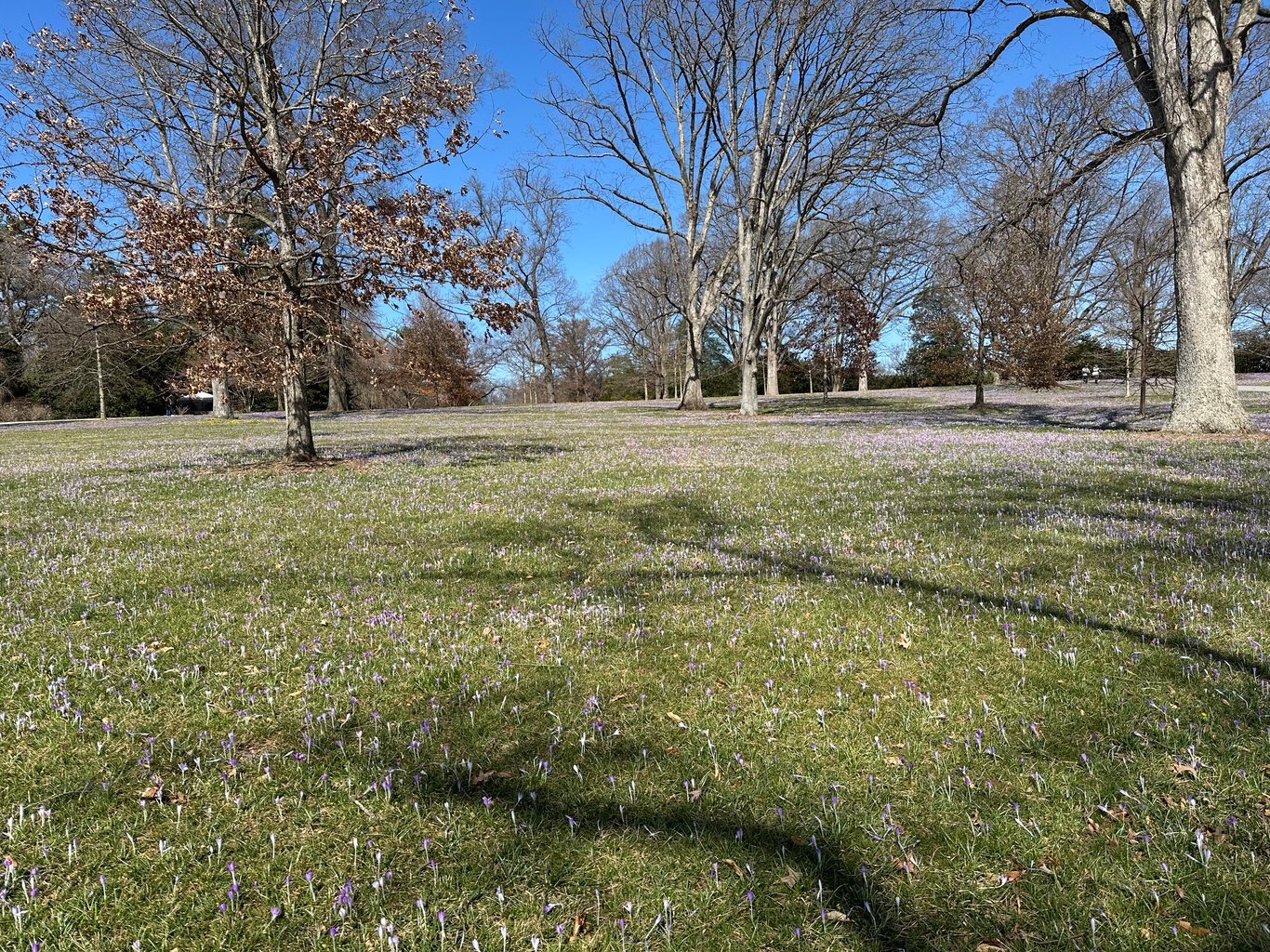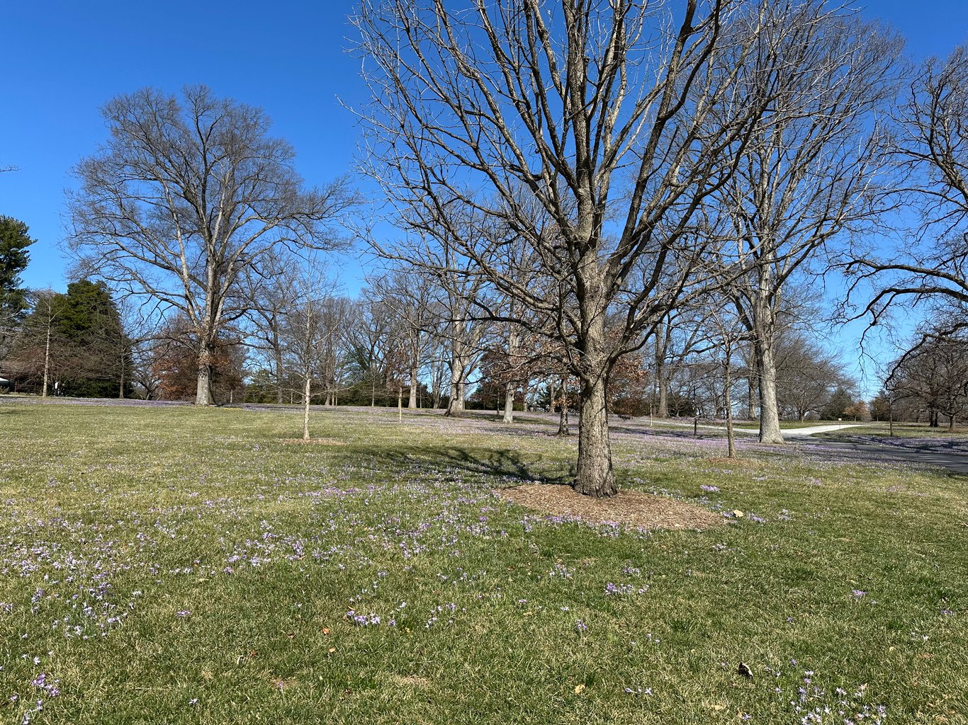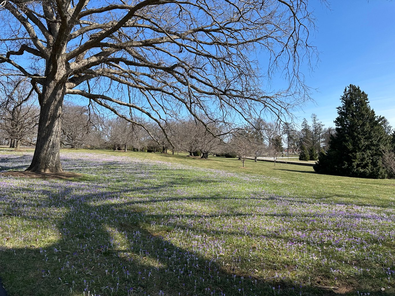 第二周去看,已经有更多不同的其他的小花开放。而且地面上的郁金香花的叶子也都钻出地面,已经有半截高了。上周来的时候都只见到一些小芽,今天来居然都长高了好几英寸的高度。可以想象,等到花开的时候,那有多壮观呀。也更加坚定我们每周都要来见证它们变化的决心。