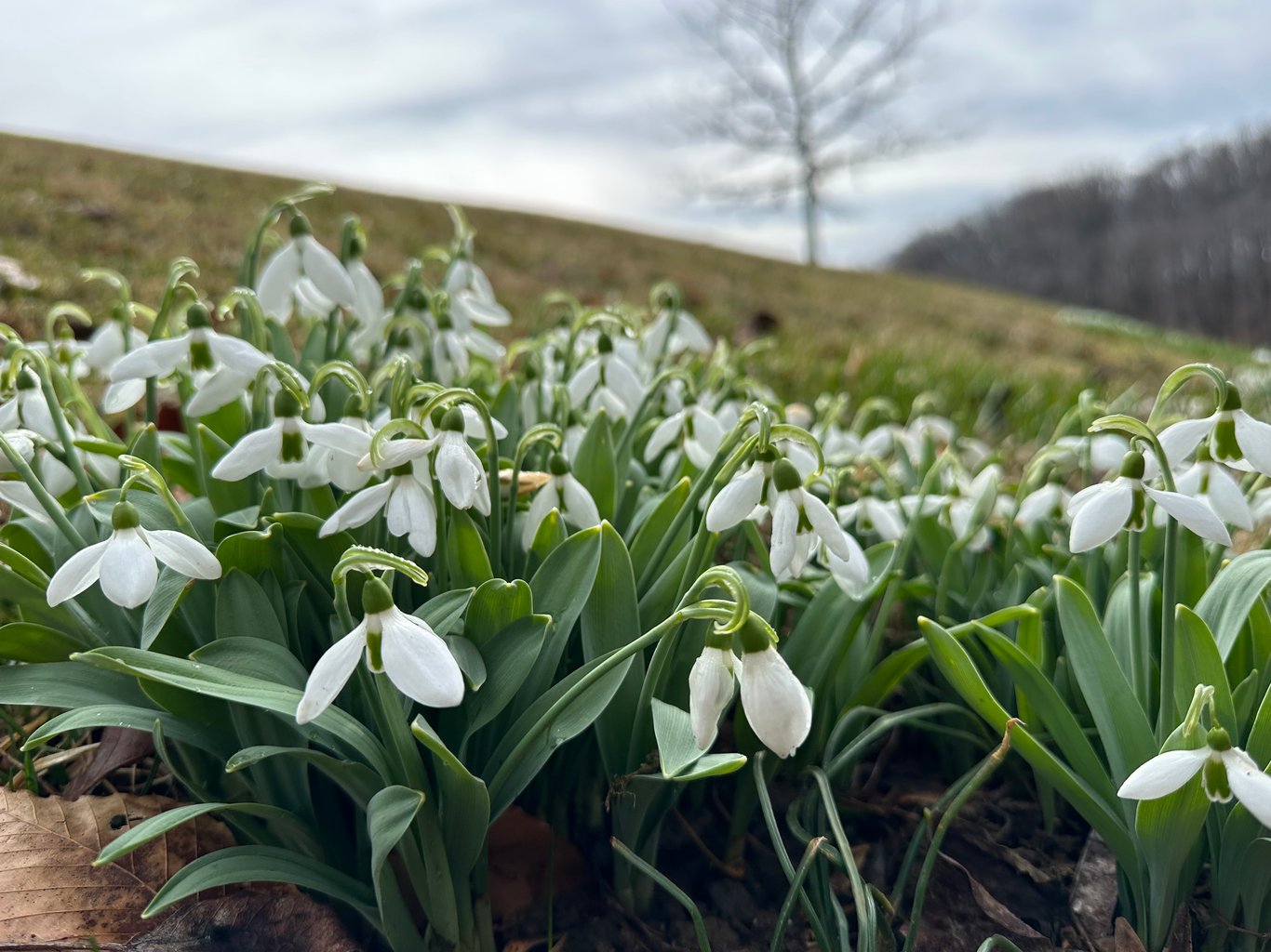 那看那一整片地面都是各种白色和黄色的小花,满地都是,即便天气还比较冷,都挡不住它们绽放的决心。