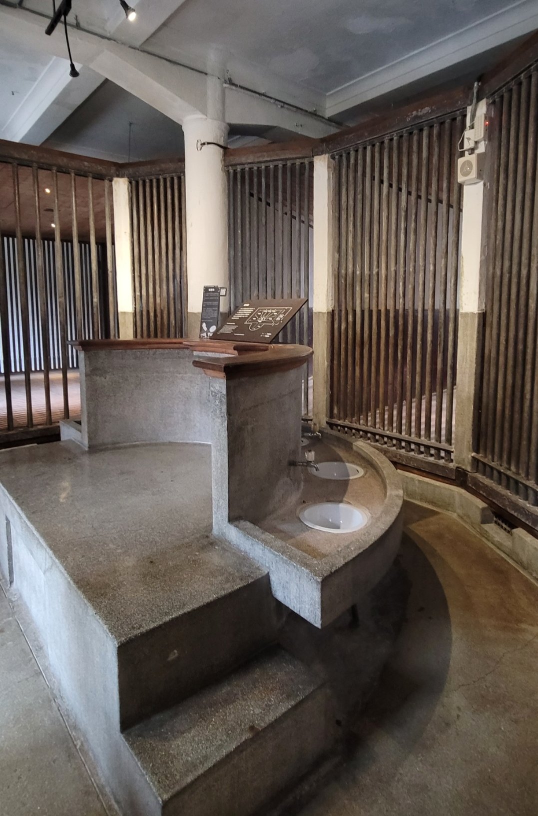 紀念館保留了早年北警署的內部設計,其中最引人注目的焦點當屬「水牢」與「扇形拘留所」。水牢在當時用以刑求犯人,扇形拘留所的設計,則讓警察得以站在中央位置監視被拘留的嫌犯。藉由這些空間的保存,民眾得以親身感受當年的氛圍。