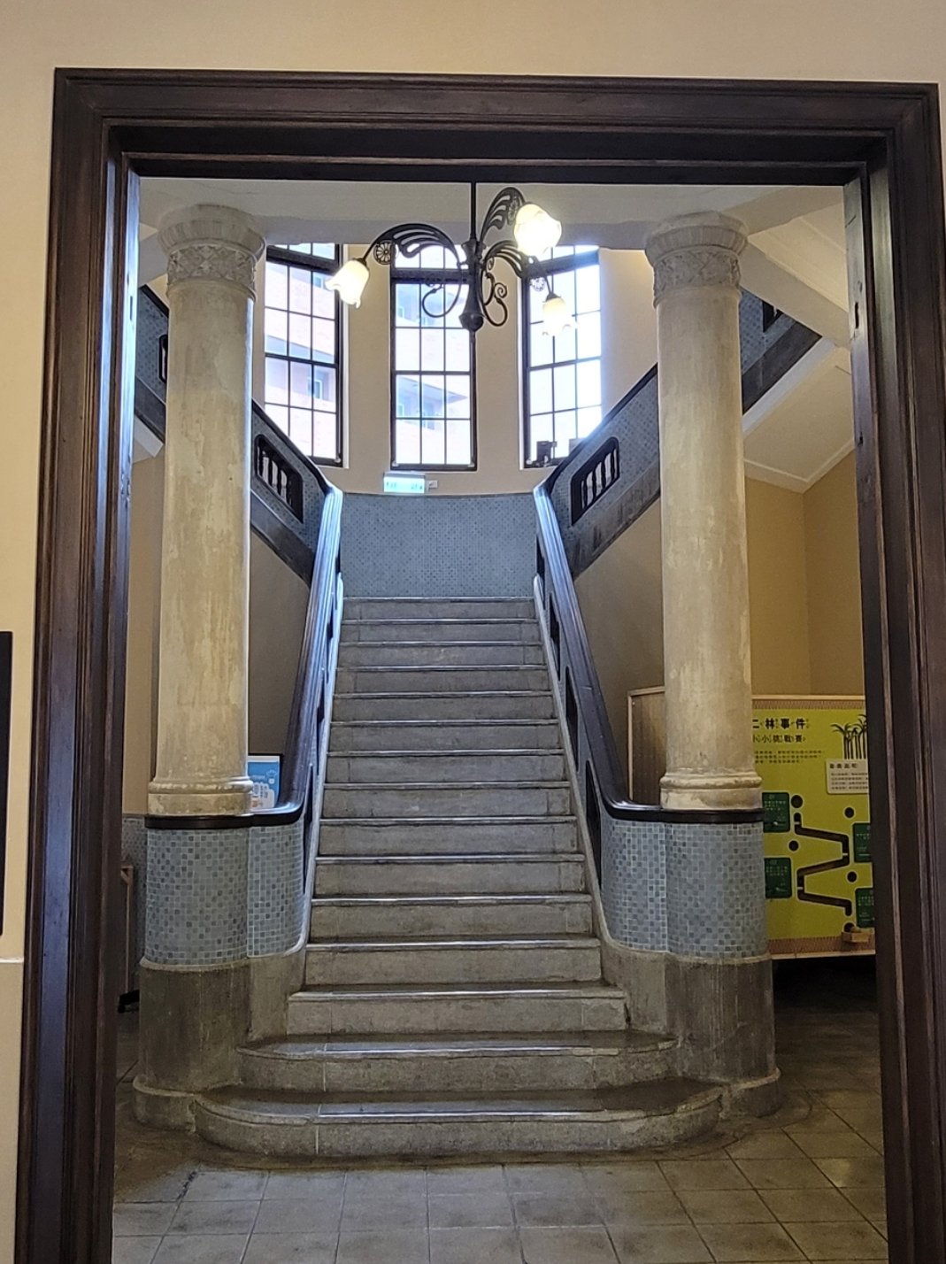 通往二樓的樓梯,在日治時期建造的許多公部門建築都是這種Y型設計,非常復古華麗,佇立的西洋式圓柱,道出過往的威嚴。