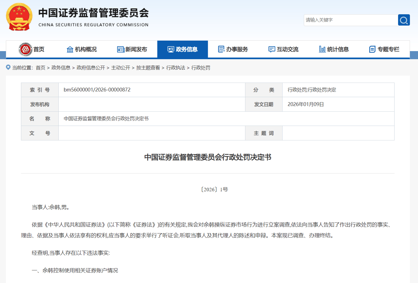 中国证券监督管理委员会行政处罚决定书〔2026〕1号