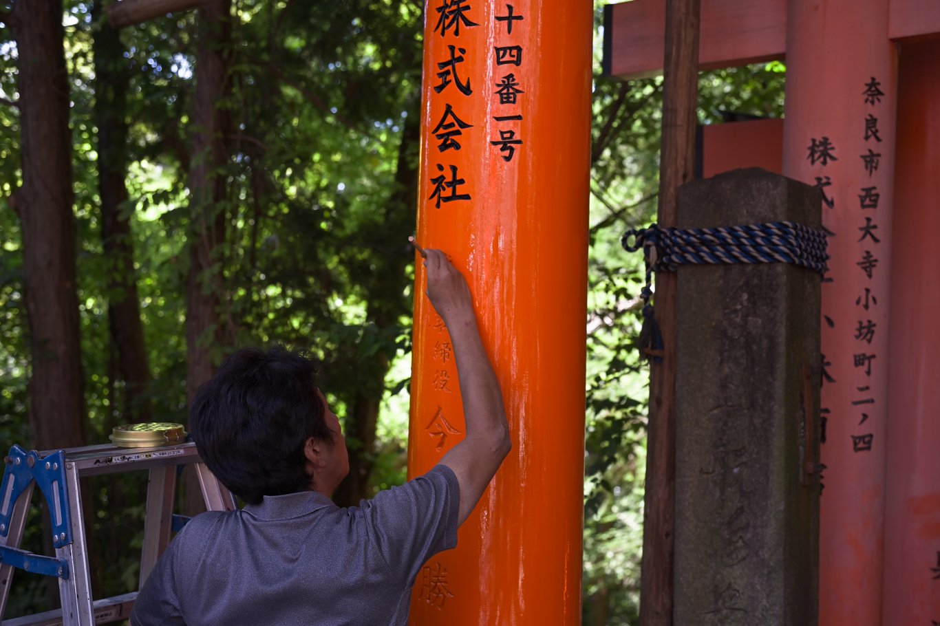 终于抵达了山顶。我模仿着排在我前面的日本少年,弓着背,击几次掌,就算参拜过了。在逛山顶的伴手礼店时,一不留神就会回想起路上遇到过的陌生人们,虽然我们之间没有说过话,但光是走同一段稍显艰辛的路程,也会留下印象,胸前挂着坠饰,乳房硕大、皮肤白皙的俄国女士,叽叽喳喳、说了一路,领着身后爷爷走的法国小女孩,皮肤黝黑、四五个人手牵着手一齐奔下台阶的印度小团体,只点了点头、就买下价值上千的妖狐面具的美国男子。
