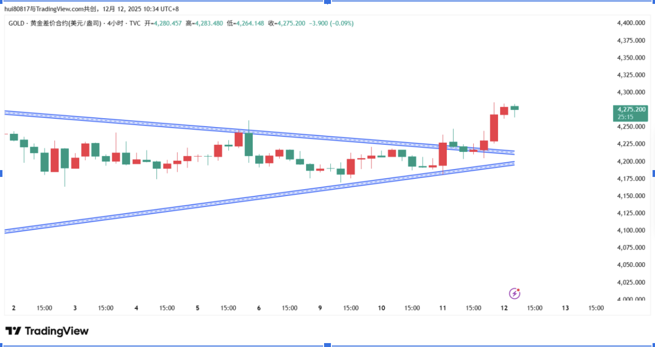 朋友們,讓我們先打開黃金的4小時圖,還記得我們之前反覆說的那個收斂三角形和天花板阻力嗎?對,就是4250美元這個區域!在昨天之前,價格就像被施了定身咒,幾次三番衝到這兒就被無情地拍下來,彷彿那裡有一堵無形的嘆息之牆。