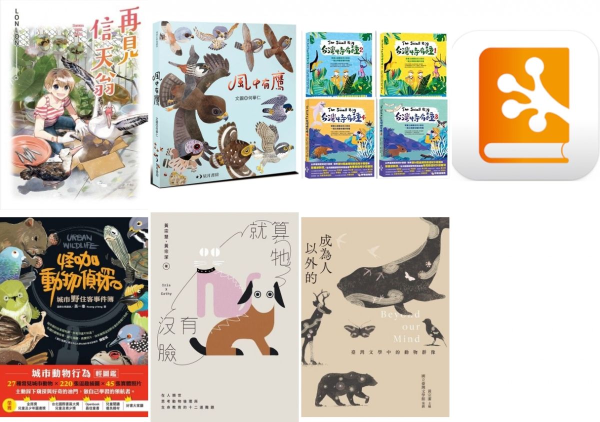 ▶動物書單 【特寫】《再見信天翁》(LONLON著,原動力文化,2019) 【特寫】《風中有鷹》(何華仁著,玉山社出版,2020) 【中景】《台灣特有種1、2、3、4》(公共電視《台灣特有種》製作團隊著,傅兆祺繪,小木馬文出版,2020) 【中景】《台灣蛙類圖鑑APP數位服務》(貓頭鷹出版,2018) 【中景】《怪咖動物偵探》(黃一峯著/繪,三采,2019) 【鳥瞰】《就算牠沒有臉》(黃宗慧、黃宗潔著,麥田,2021) 【鳥瞰】《成為人以外的》(余美玲、楊翠、馬翊航、李欣倫、葉淳之、廖偉棠、蕭義玲、范宜如等著,聯經出版公司,2022)