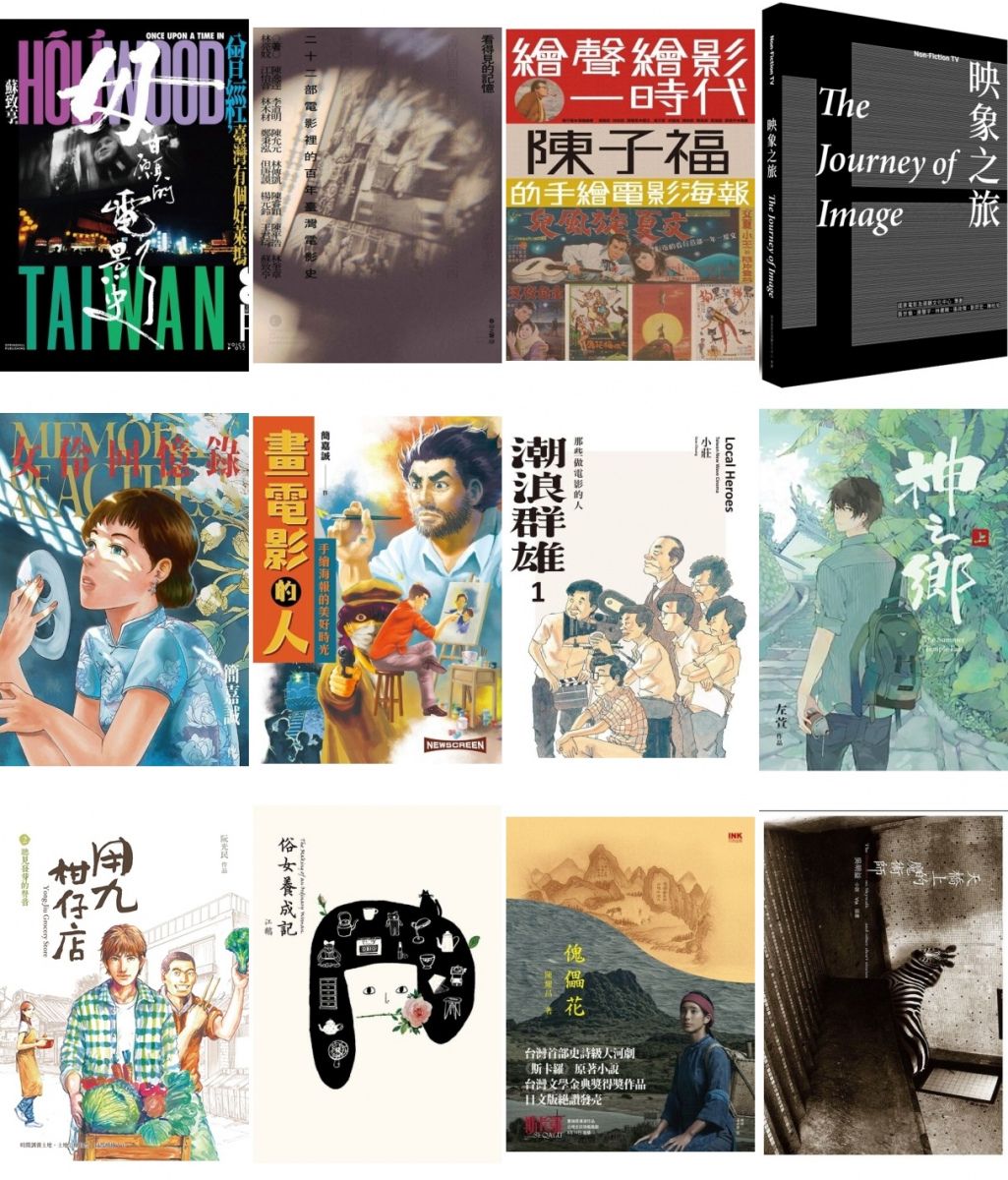 ▶影視書單 【歷史】《毋甘願的電影史:曾經,臺灣有個好萊塢》(蘇致亨著,春山出版,2020) 【歷史】《看得見的記憶:二十二部電影裡的百年臺灣電影史》(陳逸達等著,春山出版,2020) 【歷史】《繪聲繪影一時代:陳子福的手繪電影海報》(黃翰荻、林欣誼、陳雅雯 著,遠流出版,2021) 【歷史】《映象之旅》(張世倫、唐慧宇、林書媺、張政傑、劉羿宏、陳柏旭著,國家電影及視聽文化中心出版,2021) 【漫畫】《女伶回憶錄》(簡嘉誠著,蓋亞出版,2023) 【漫畫】《畫電影的人》(簡嘉誠 著,蓋亞出版,2021) 【漫畫】《潮浪群雄1》(小莊著,大辣 出版,2022) 【影視改編】《神之鄉》(左萱著,蓋亞文化有限公司,2015、2016) 【影視改編】《用九柑仔店 》(阮光民著,遠流出版,2016~2019) 【影視改編】《俗女養成記》(江鵝著,大塊文化出版,2016) 【影視改編】《傀儡花》(陳耀昌著,印刻出版,2016) 【影視改編】《天橋上的魔術師》(吳明益著,夏日出版出版,2011)