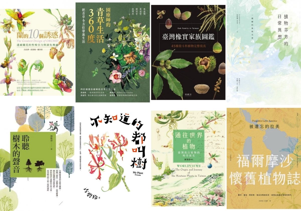 ▶植物書單 【特寫】《蘭的10個誘惑:透視蘭花的性吸引力與演化奧祕》(呂長澤、莊貴竣、鄭杏倩著,遠流出版,2022) 【特寫】《園療師的青草生活360度》(黃盛璘、黃盛瑩、劉雨青、張博然著,一卷文化,2022) 【特寫】《臺灣橡實家族圖鑑:45種殼斗科植物完整寫真》(林奐慶著,麥浩斯出版,2019) 【中景】《植物芬芳的日常異想》(何欣潔著,堡壘文化,2022) 【中景】《聆聽樹木的聲音》(詹鳳春著,麥田出版,2022) 【中景】《不知道的都叫樹》(古碧玲著,大塊文化,2022) 【鳥瞰】《通往世界的植物:臺灣高山植物的時空旅史》(游旨价著,春山出版,2020) 【鳥瞰】《被遺忘的拉美─福爾摩沙懷舊植物誌:農村、童玩、青草巷,我從亞馬遜森林回來,追憶台灣鄉土植物的時光》(胖胖樹 王瑞閔著,麥浩斯出版,2021)》