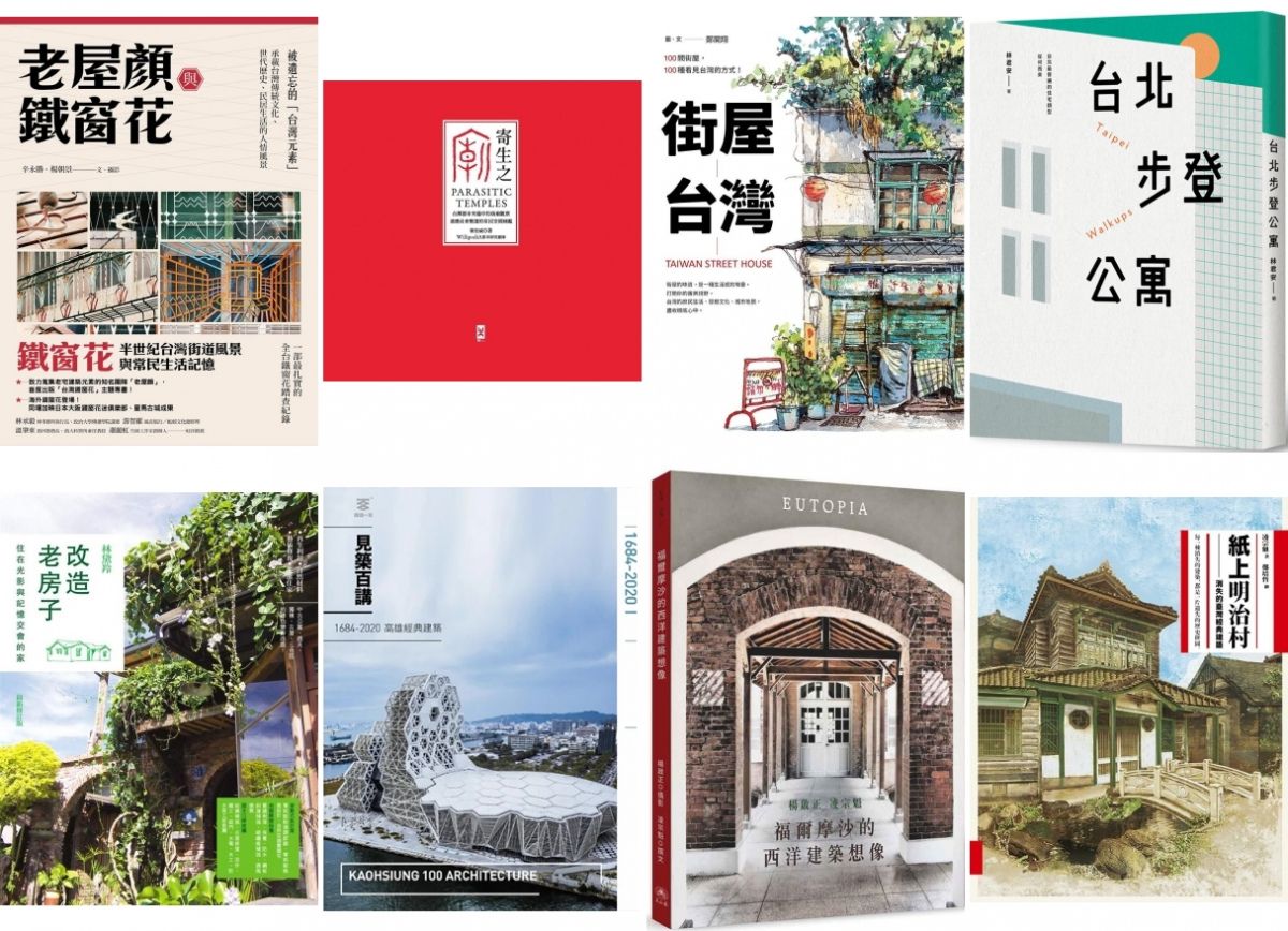 ▶建築書單 【特寫】《老屋顏與鐵窗花》(老屋顏(辛永勝、楊朝景)著,馬可孛羅,2020) 【特寫】《寄生之廟》(賴伯威著,野人,2017) 【特寫】《街屋台灣》(鄭開翔著,遠流,2019) 【中景】《台北步登公寓》(林君安著,田園城市,2018) 【中景】《改造老房子》(林黛羚著,商周出版,2014) 【中景】《見築百講:1684-2020高雄經典建築》(侯慶謀, 陳玉霖, 陳佑中, 陳家宇, 陳坤毅, 黃于津, 黃則維, 劉呈祥, 蔡侑樺, 蔡寧, 龍霈著,遠足文化出版,2021) 【鳥瞰】《福爾摩沙的西洋建築想像》(楊啟正、凌宗魁著,玉山社,2018) 【鳥瞰】《紙上明治村:消失的台灣經典建築》(凌宗魁著,鄭培哲繪,遠足文化,2016)