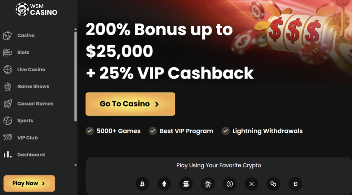 WSM Casino 亦支援原生代幣 $WSM 作為存取款貨幣,玩家能以較低門檻參與平台經濟圈。同時平台提款效率極高,多數款項能在 0 至 24 小時內完成處理,被視為加密賭場中備受肯定的優點。其設計風格延續 Wall Street Memes 的幽默諷刺風格,介面充滿視覺個性,既有娛樂感,也不失專業性。