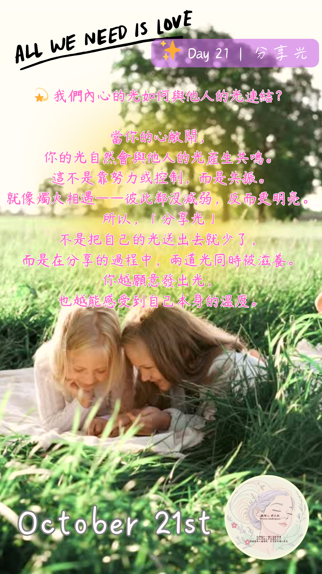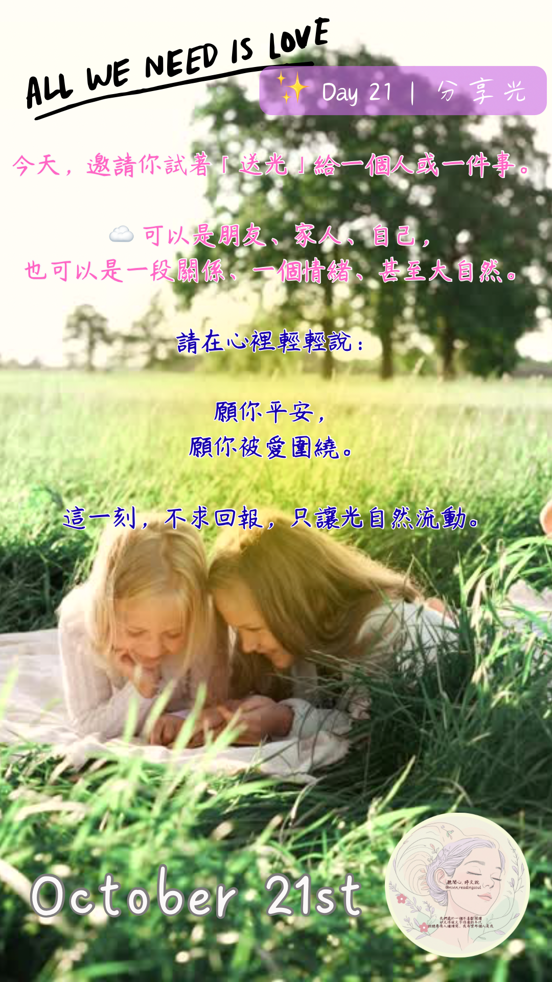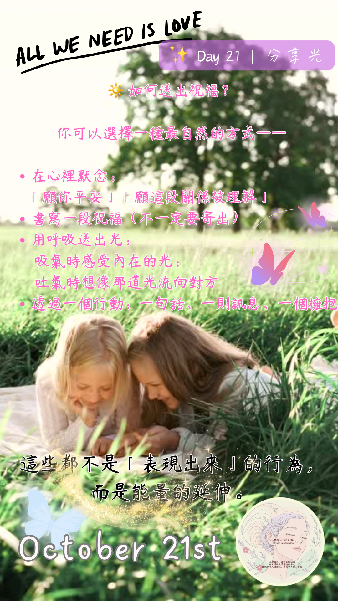 今天的我,學到的不是「解決問題」,而是「讓愛與光流得更遠」。