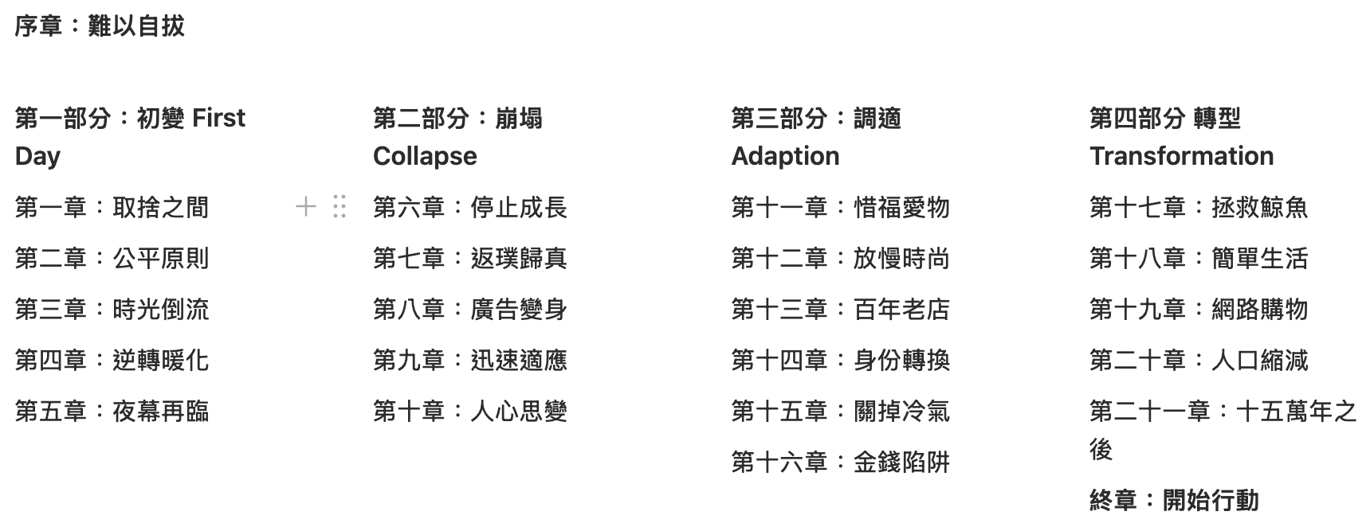 這是一場關於轉型的練習。即便環境依然混亂,即便我們仍身處消費產業的浪潮中,只要心中那把對於永續的尺還在,我們就能在購物的喧囂中,保有最後一點機智與清醒。如果我的努力只是九牛一毛,那還有意義嗎? 作者並非要給出一個完美的減碳公式,而是要我們看清脈絡與後果,當我們心態的轉向從擔心資源匱乏(應該就不會再剁手手)轉向感受當下的富足。